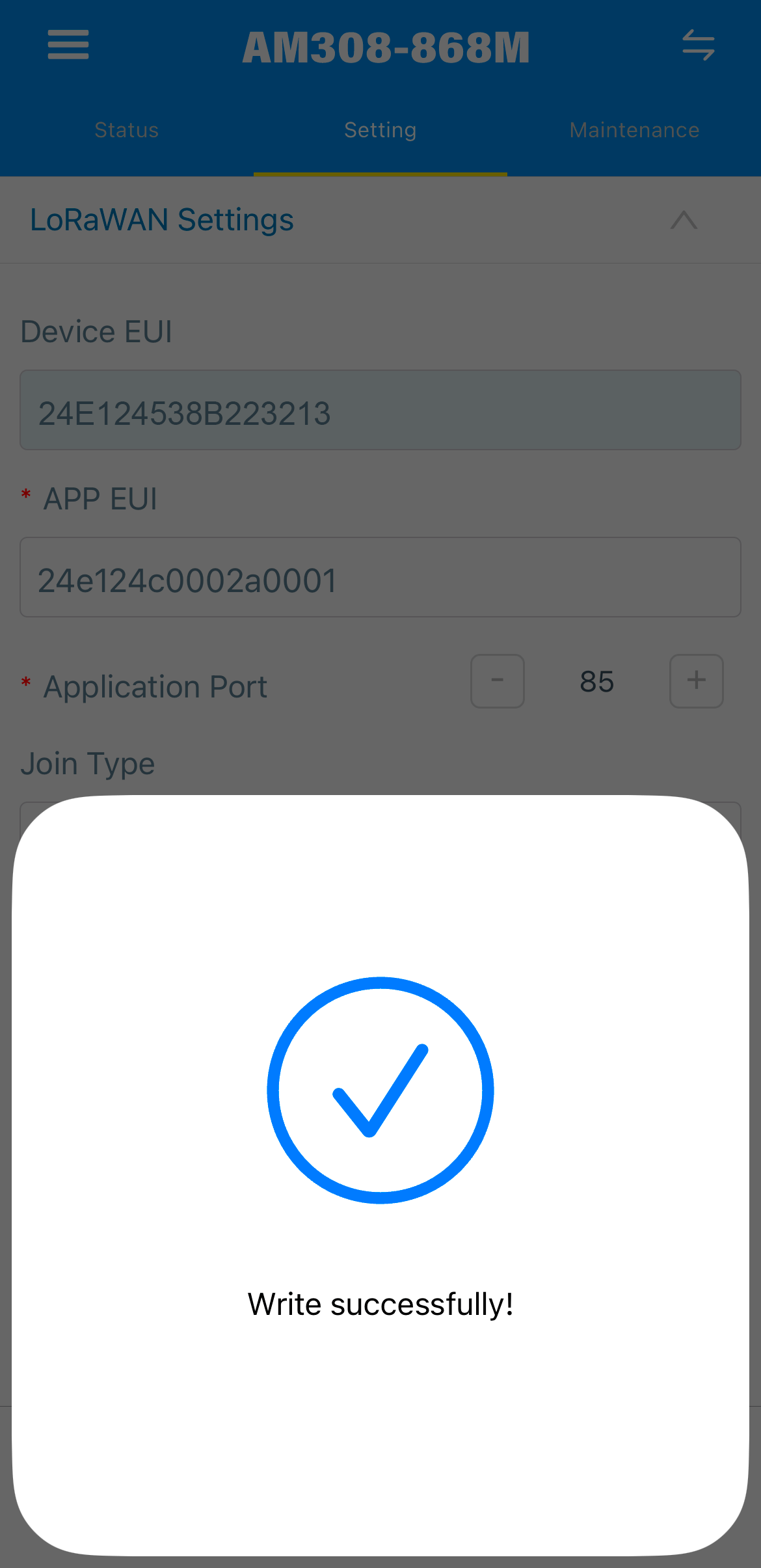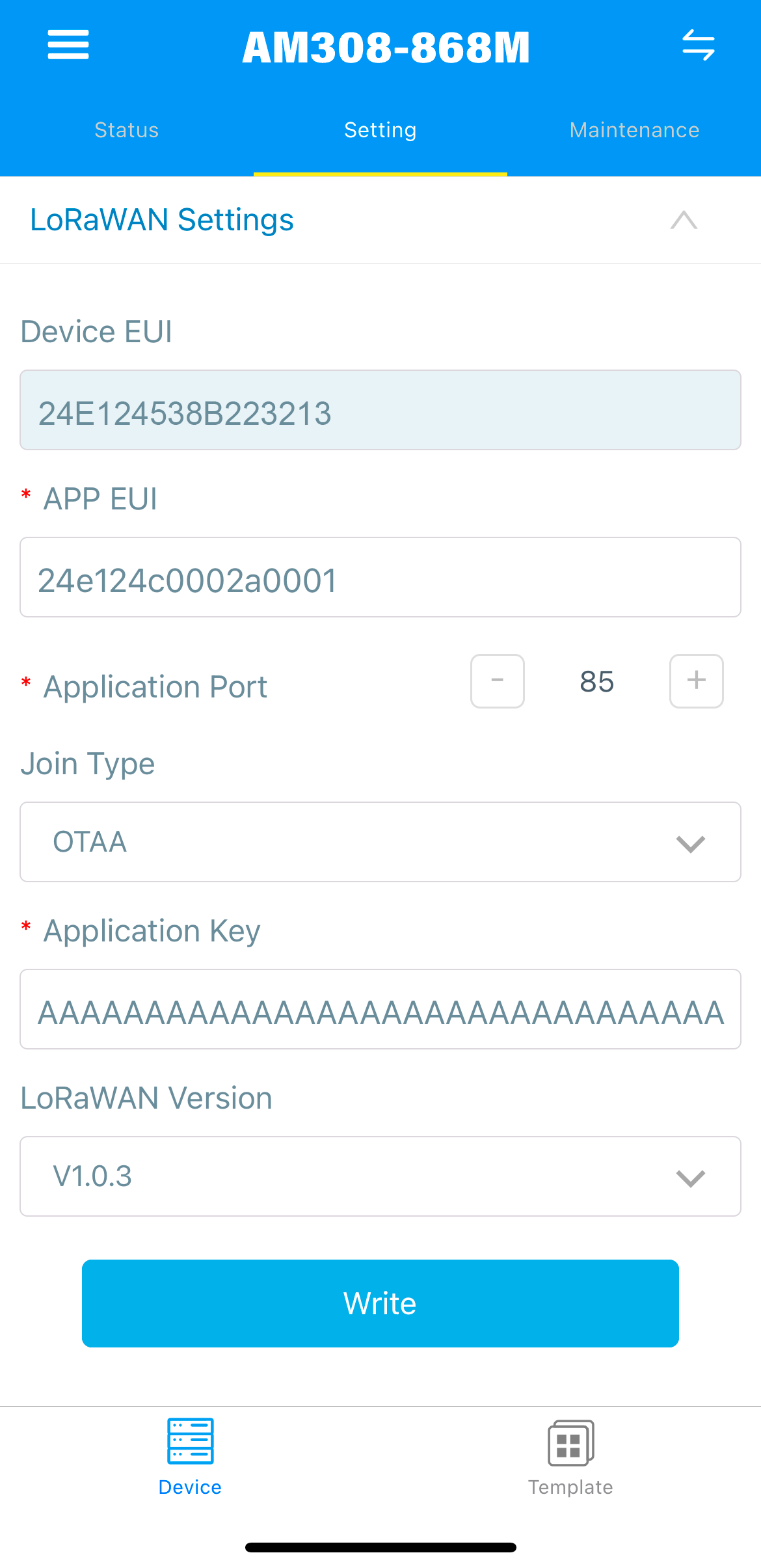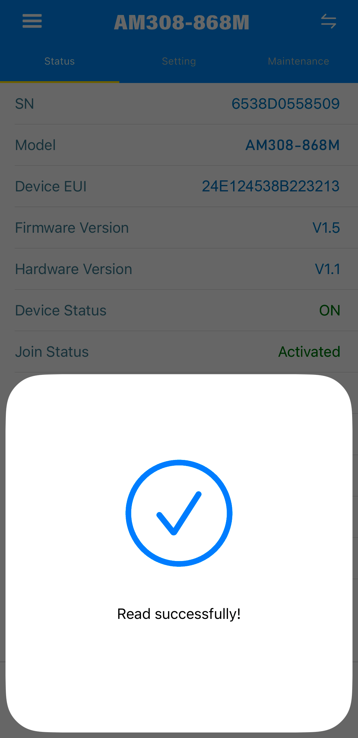 To read and write configuration on the device you may follow next steps on your smartphone: