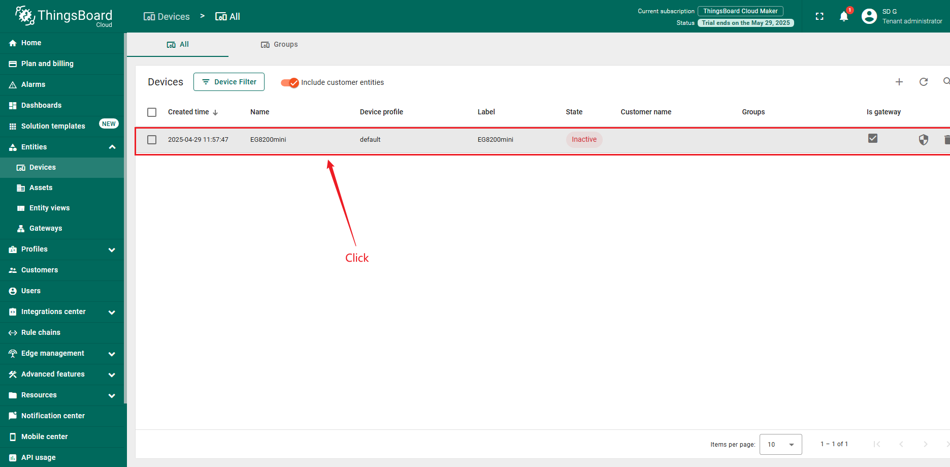 Click on the created device and fill in the configuration information in the following figure into the gateway.