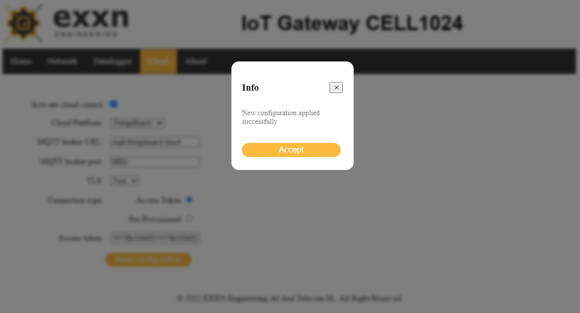 Open a Browser to the administration web of Cell 1024 using the URL: https://[IP_DEVICE] and go to the “Cloud” tab.