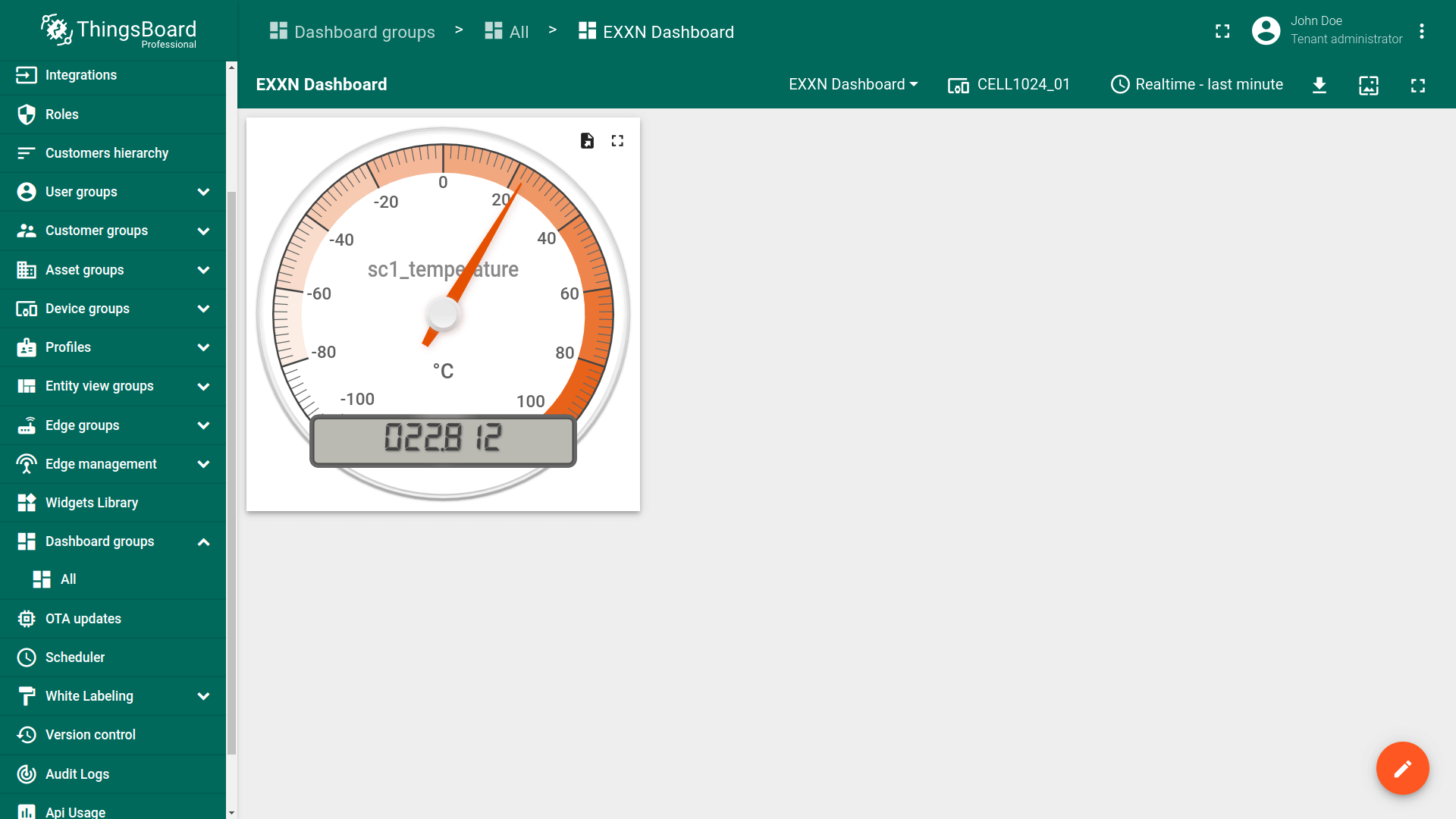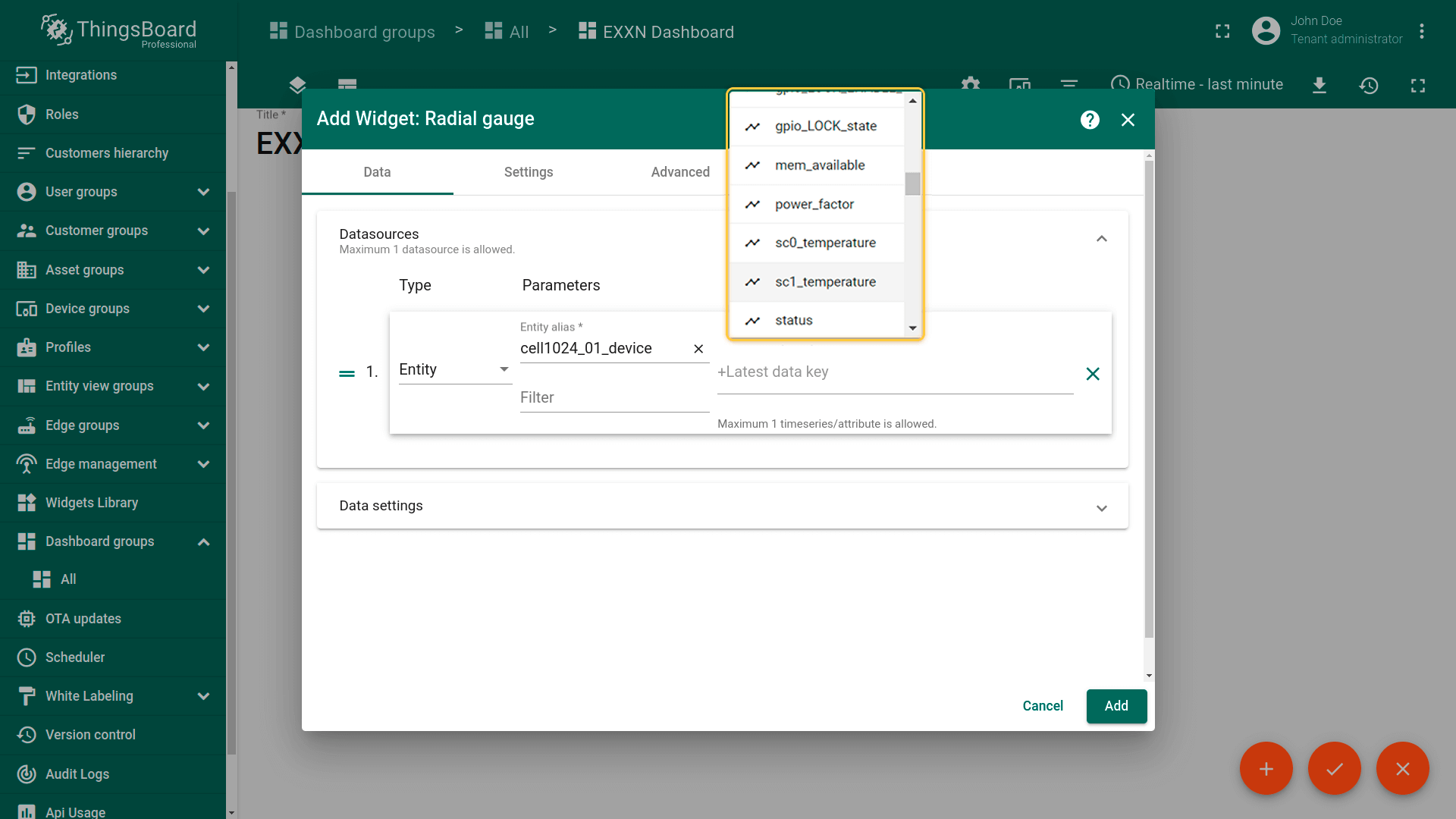 Create Radial gauge widget from the Analog gauges bundle. We used sc0_temperature.