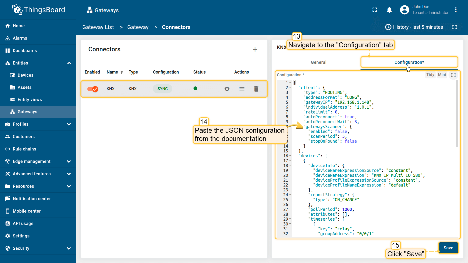 With the knowledge in this guide, you can easily connect your KNX IP Multi IO 580 controller with switch, shutter, and relay to ThingsBoard. After connecting the devices to the gateway, you will be able to see and process the data coming from the devices on the ThingsBoard.
