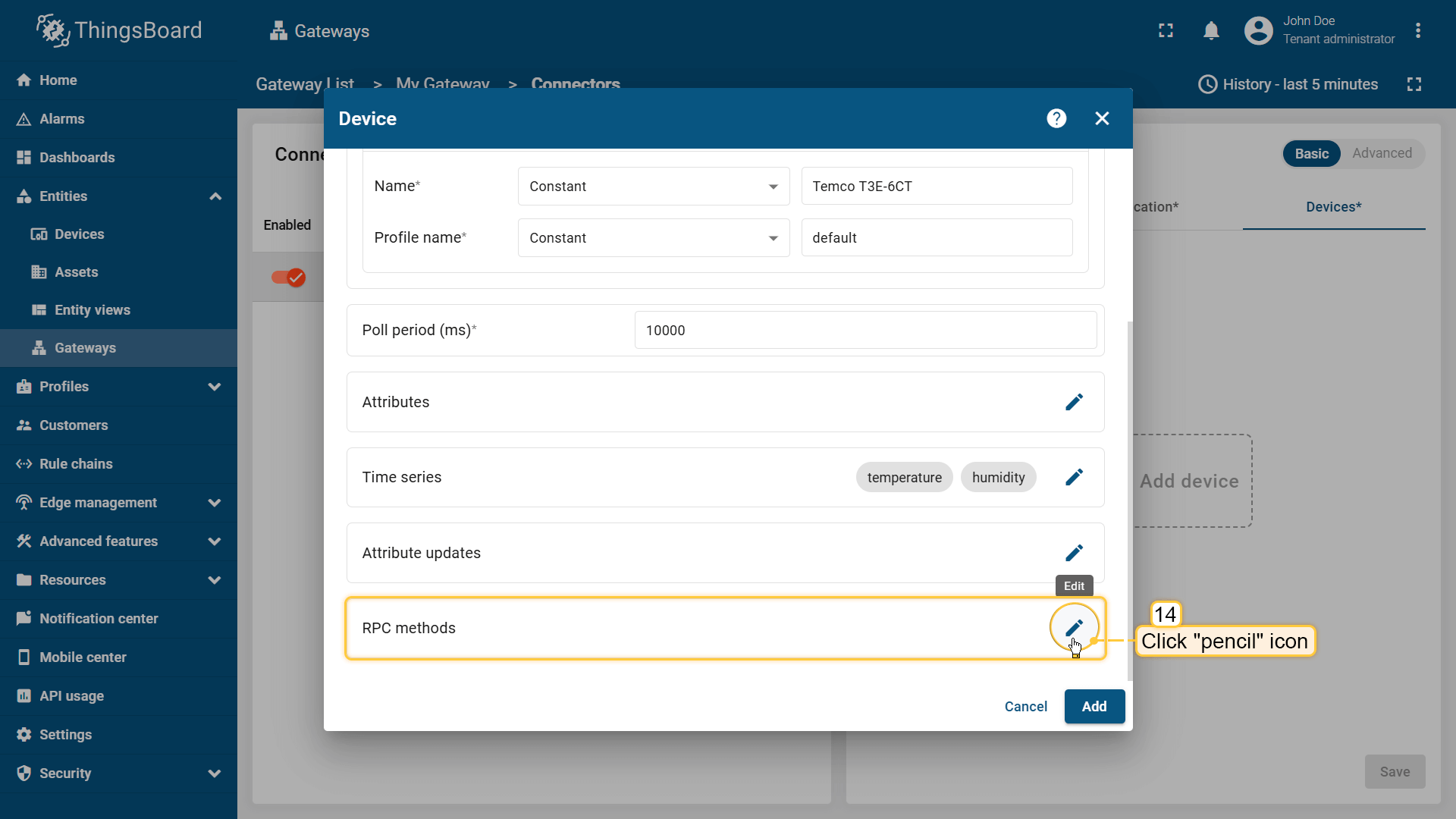 Furthermore, the Temco T3E-6CT provides two output relays that can be controlled using the gateway. Let’s create a new RPC command to control the relay. To do this, follow these steps: