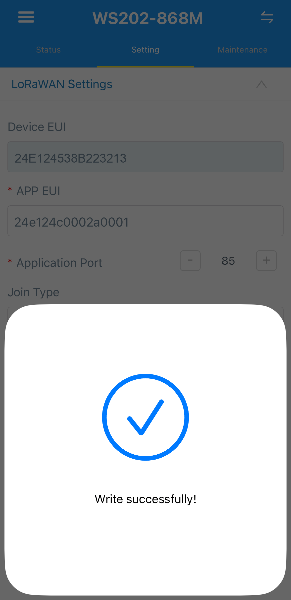To read and write configuration on the device you may follow next steps on your smartphone: