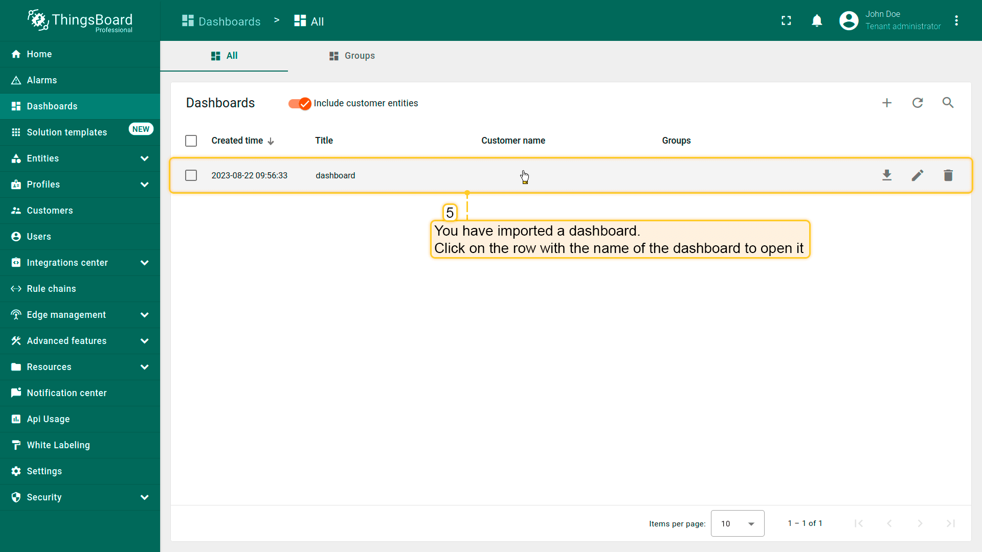 • Dashboard has been imported.