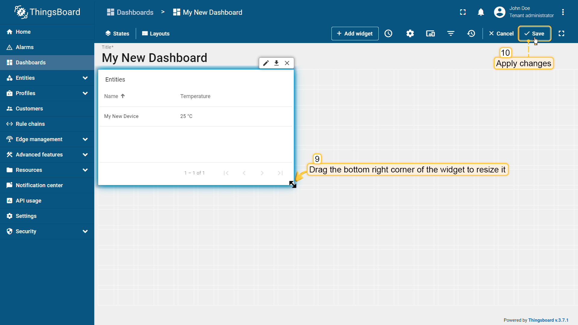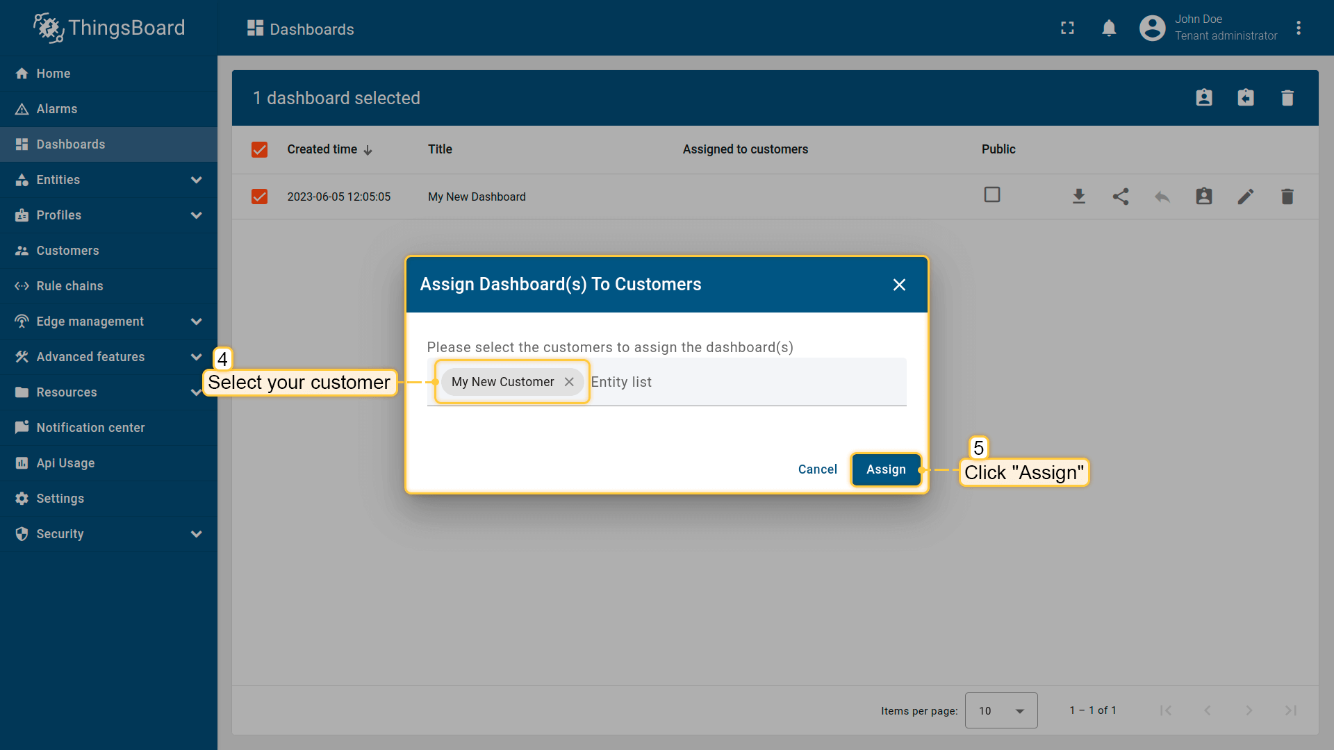 Step 7. Assign device and dashboard to customer