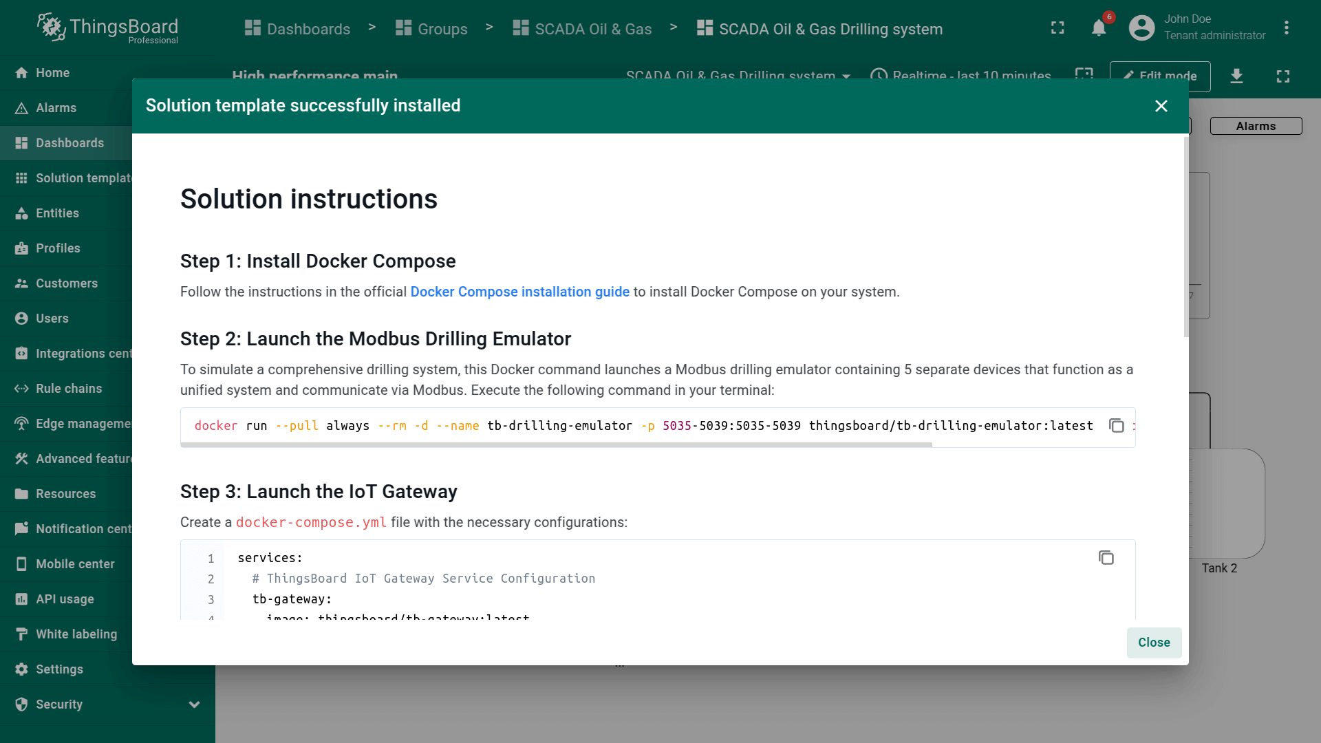 - Go to the “Solution templates” page. Find “SCADA Oil & Gas Drilling system” and click “Install” to start the installation process.