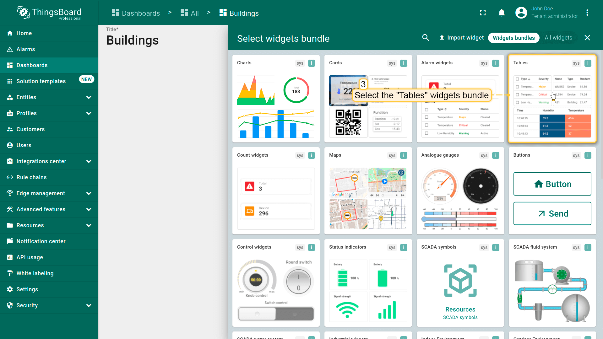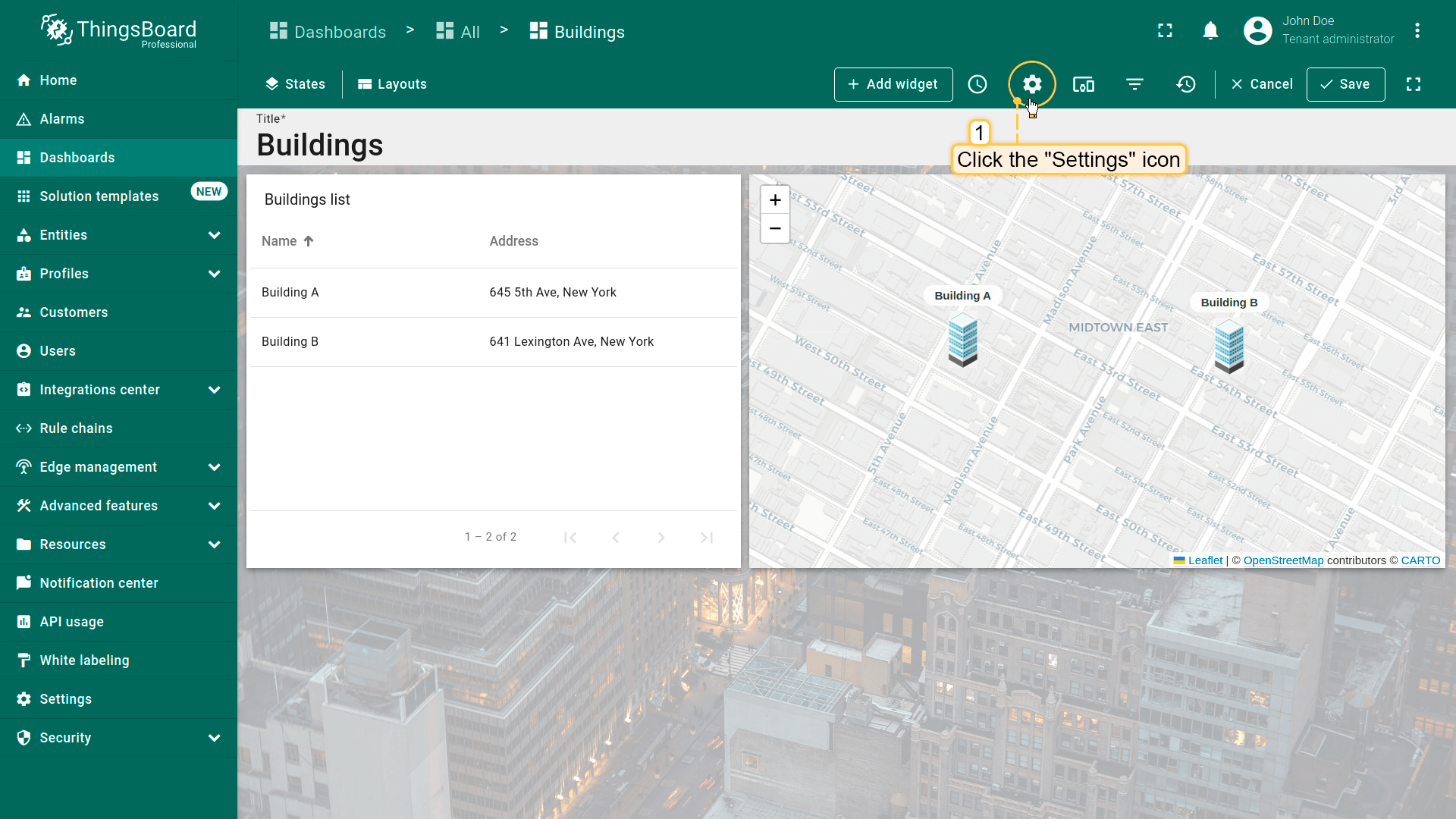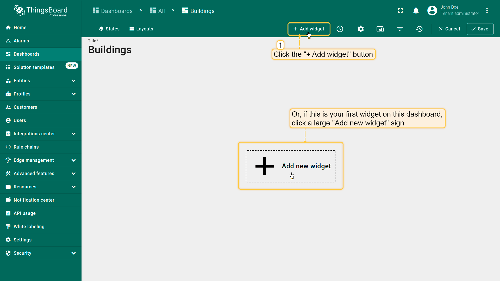- Enter the title for the dashboard - “Buildings” and click “Add”;
