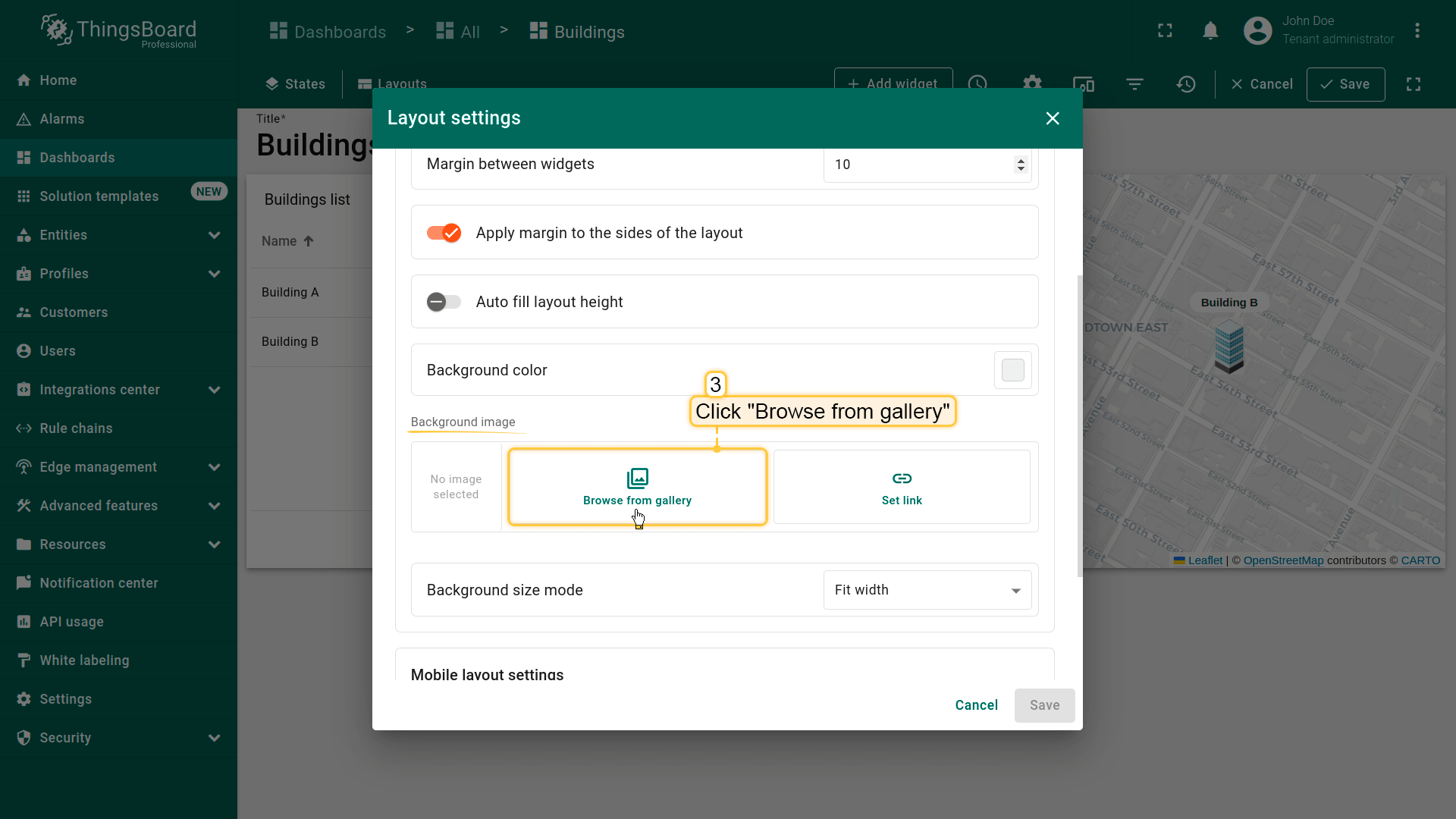 Transform the look of your dashboard by adding a custom background image for the “Buildings” state. This visual enhancement not only makes the interface more engaging but also aligns it with your branding or aesthetic preferences. You can use the image from this tutorial or your own.