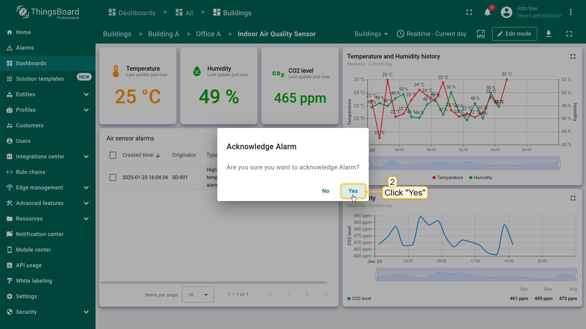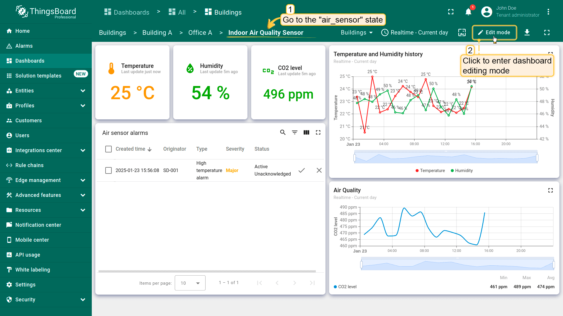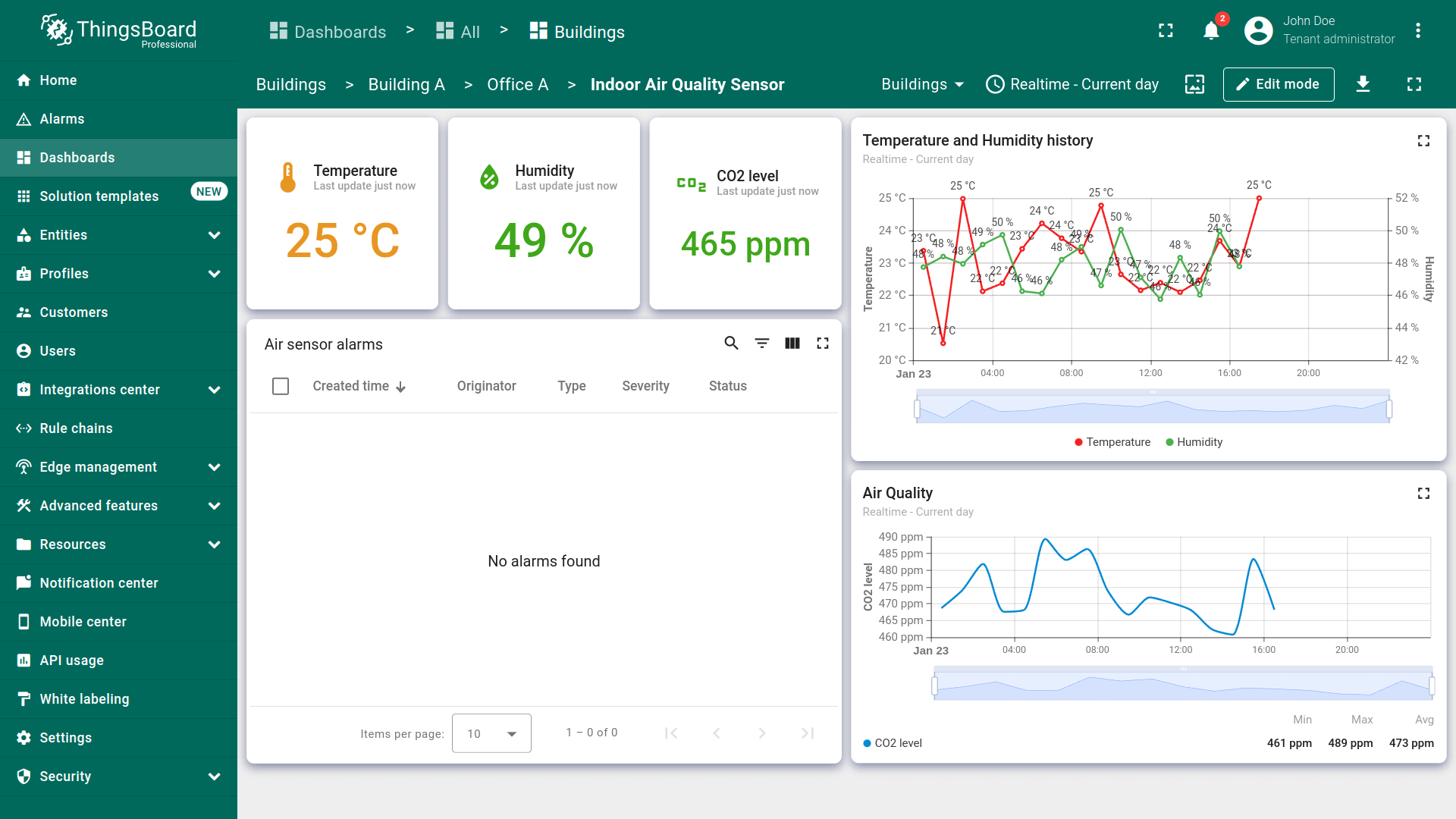 In this lesson, we will configure alarm rules for the Indoor Air Quality Sensor and add a widget to manage the device's alarms. Let's start.