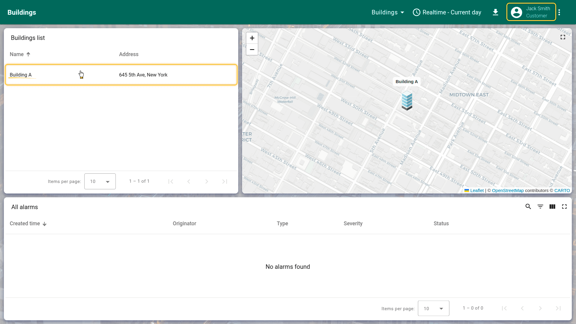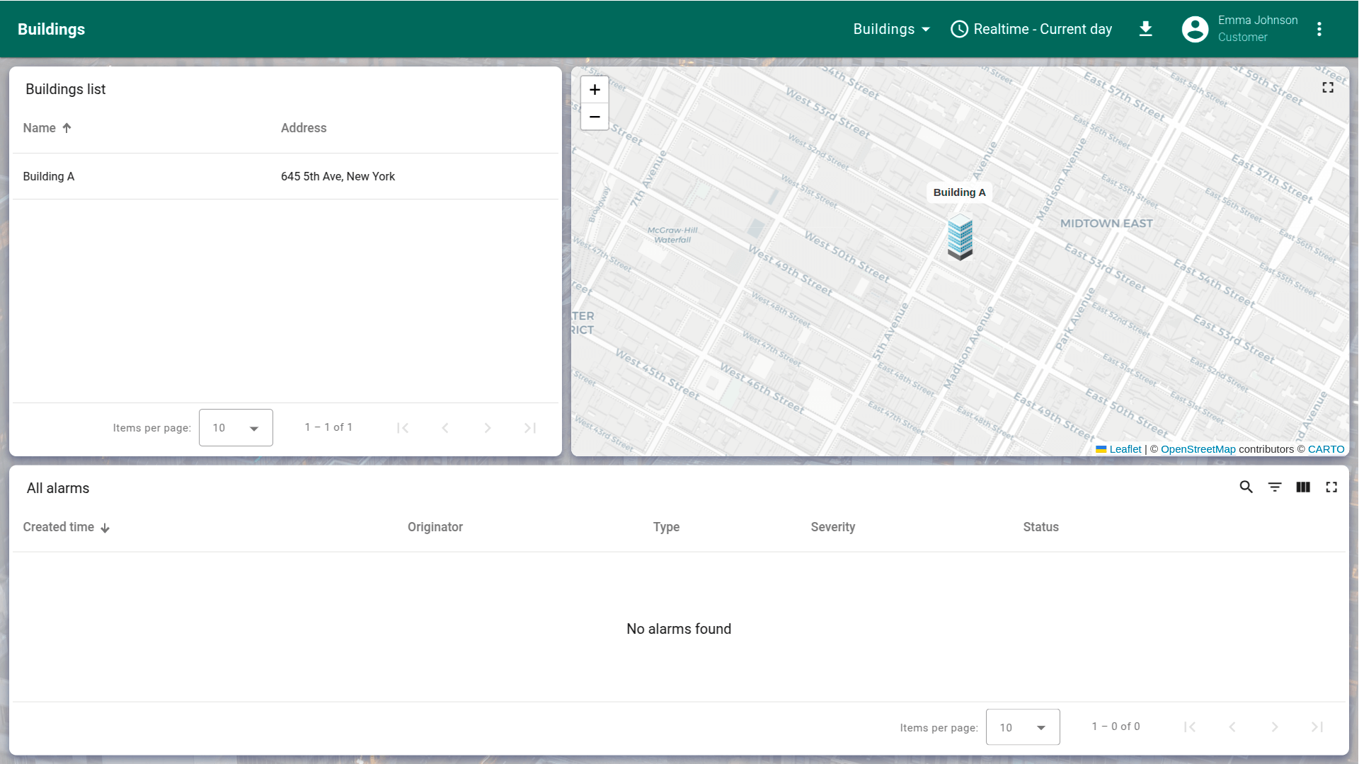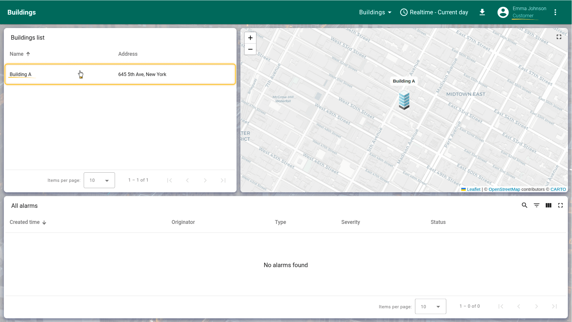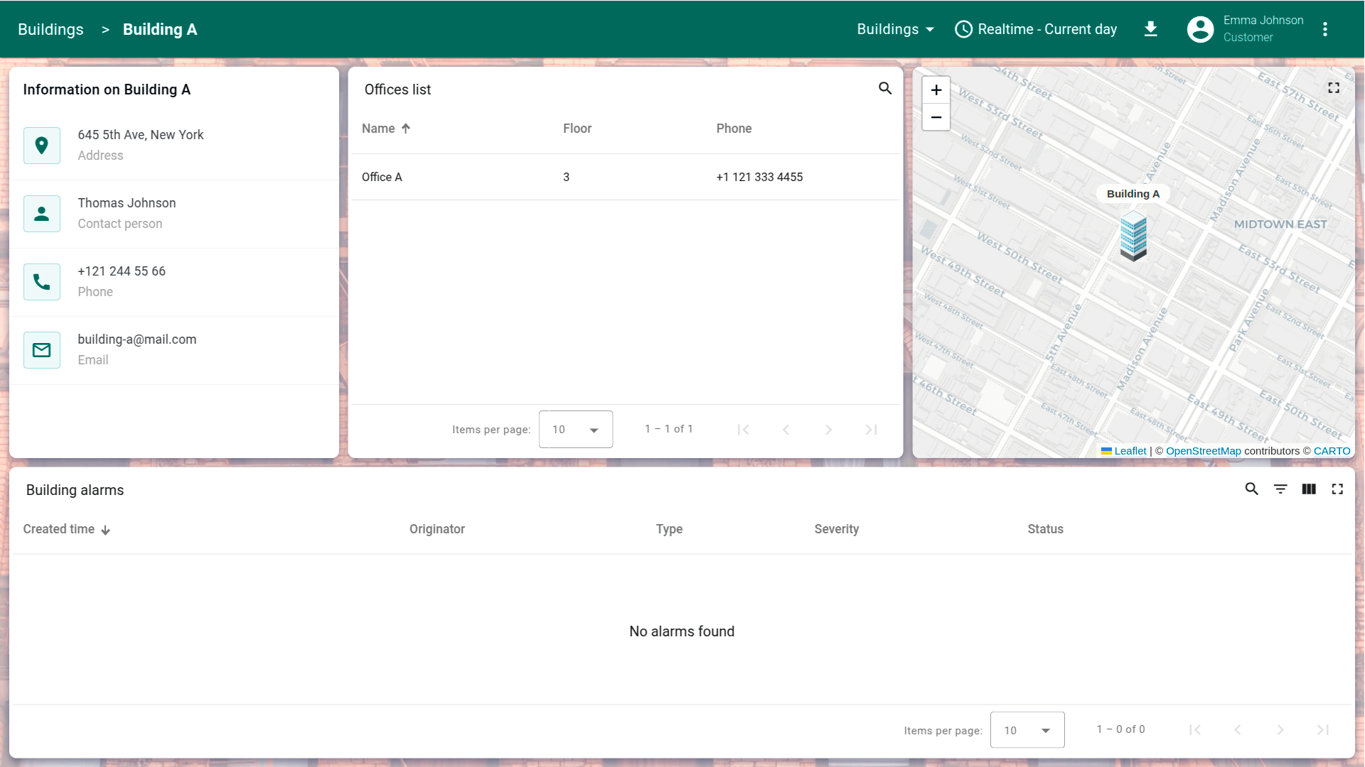 The dashboard will open, displaying only the building where your office is located — Building A. Navigate through the dashboard to ensure that your user has access only to the data you have granted them access to.