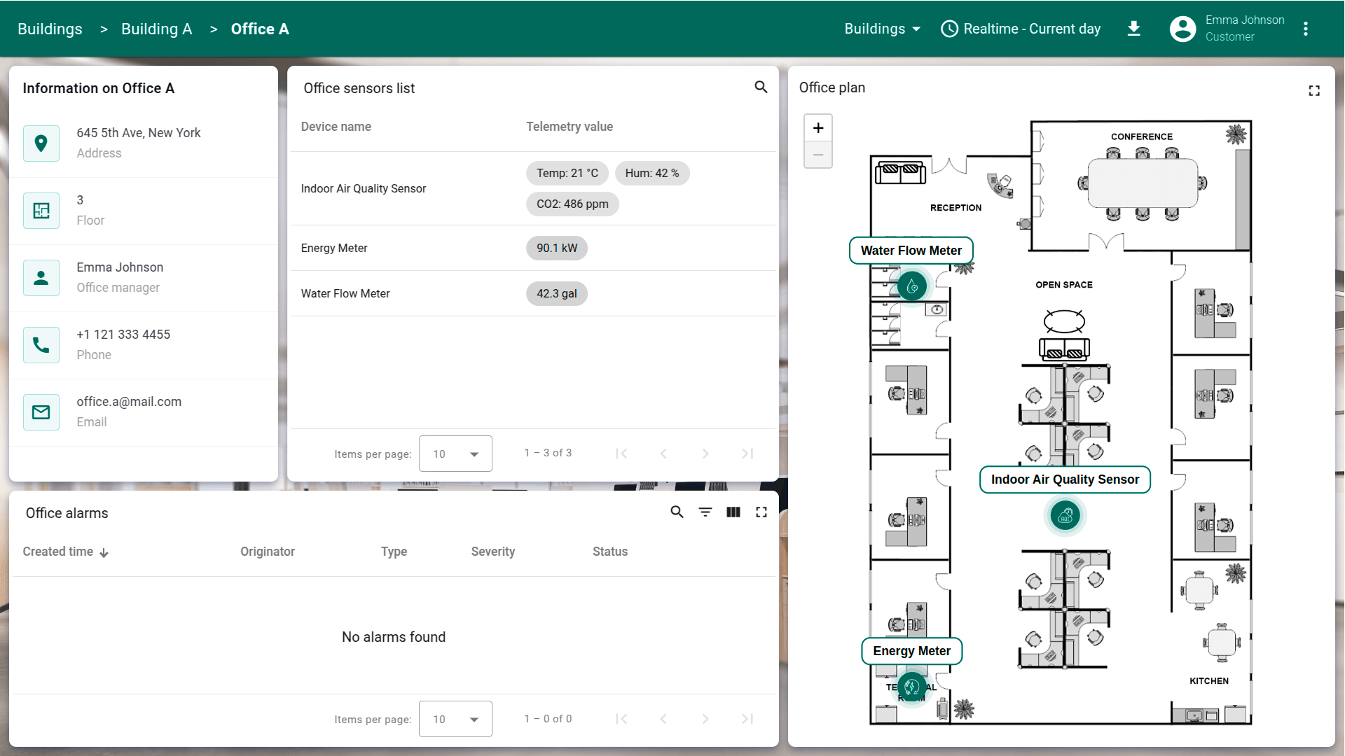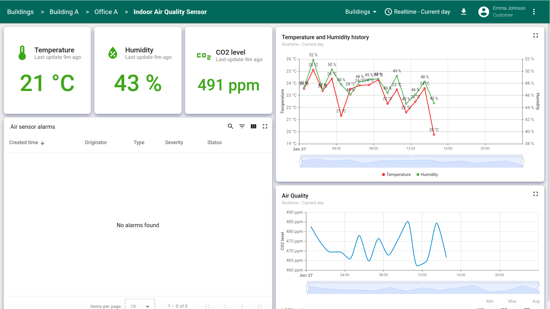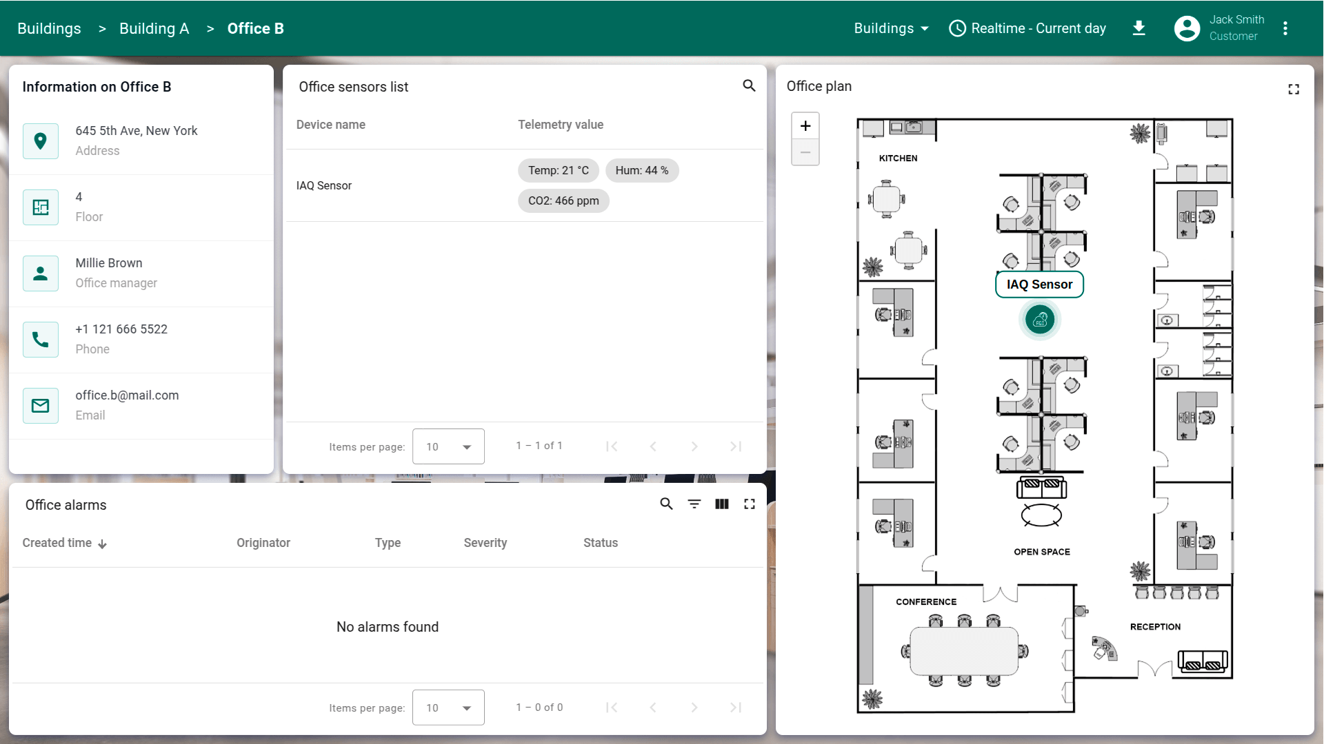 Similarly, activate the user of Customer B. They should have access to Office B in Building A and the data from the IAQ Sensor located inside the Office B.