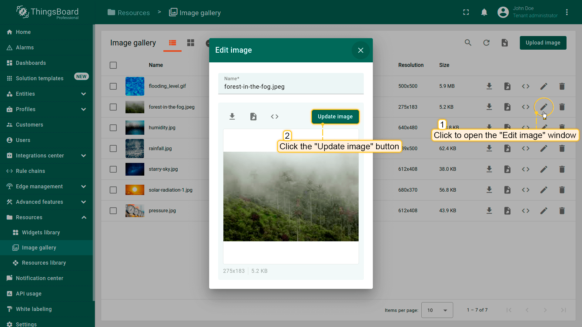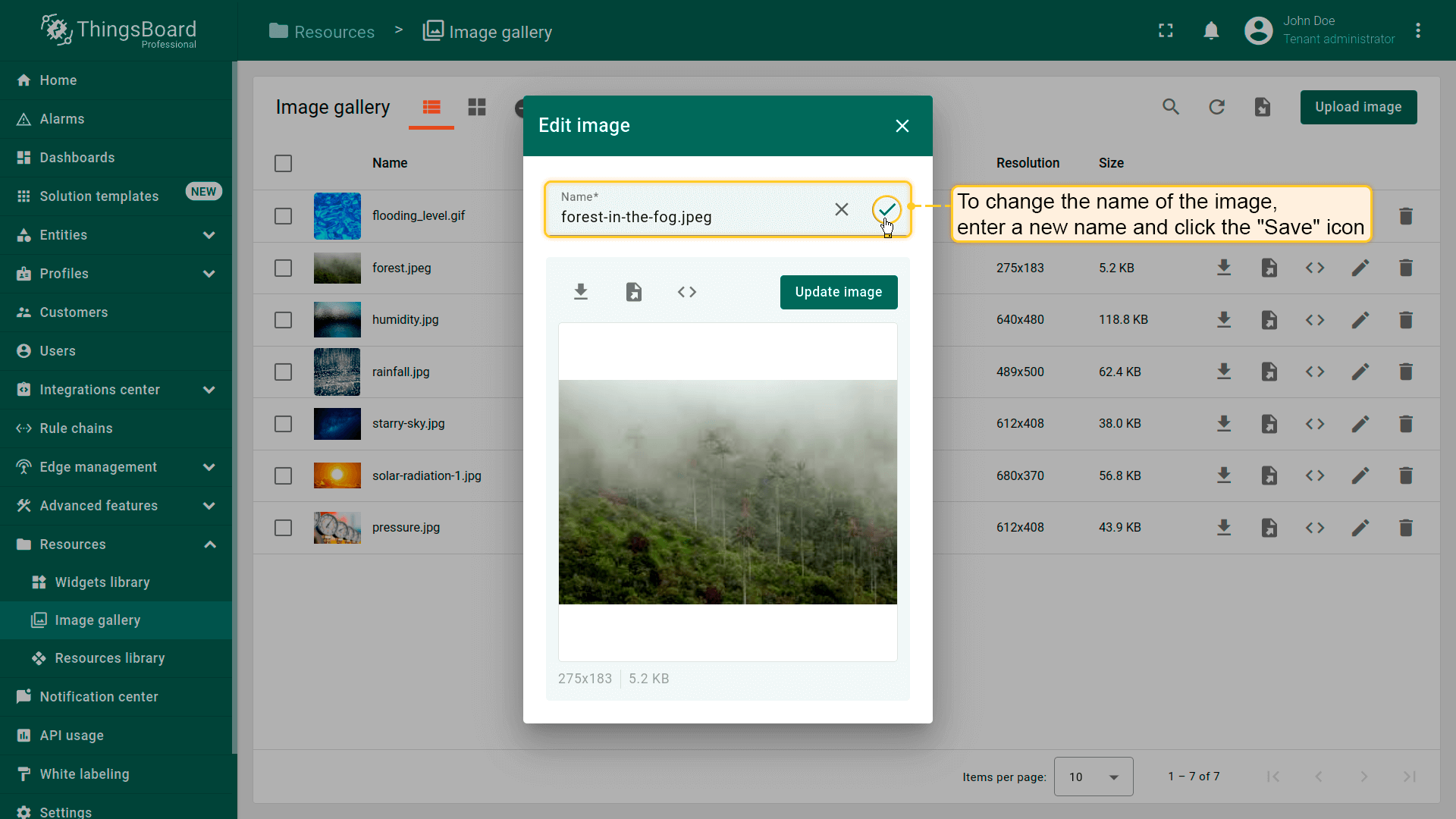 To change the name of the image, enter a new name and click the “Save” icon in the “Edit image” window.