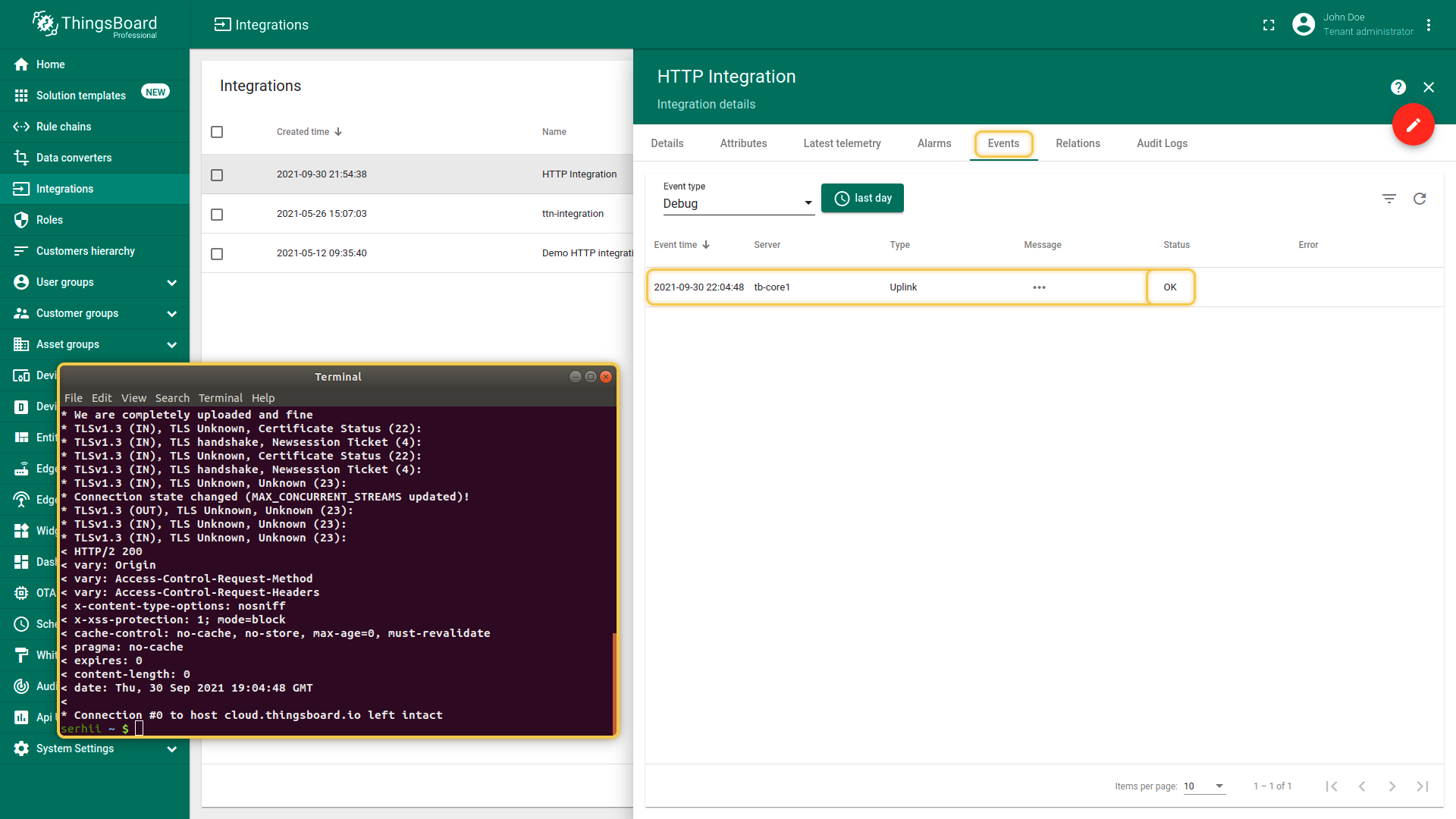 Go to the “Events” tab in your HTTP integration. If you have done everything correctly, you should see one event with the status ‘OK’.