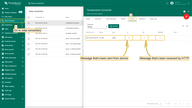Also, sent and received data can be viewed in the Uplink converter. In the ‘In’ and ‘Out’ blocks of the “Events” tab.