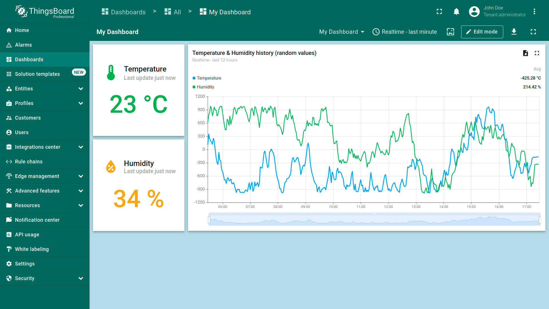 - Enter dashboard edit mode by clicking the “Edit mode” button in the upper right corner of the window;