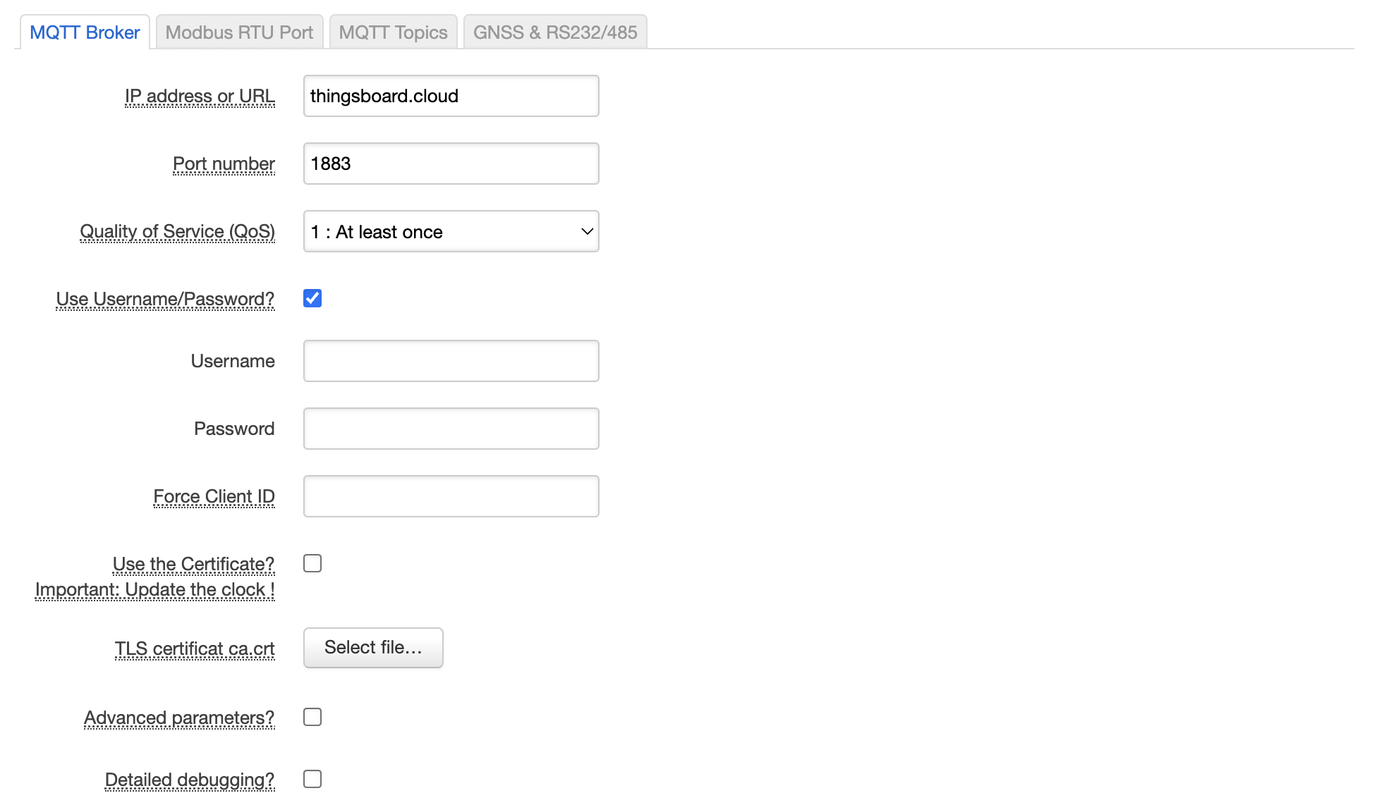 - Go to Gateway > MQTT Configuration > MQTT Broker (tab);