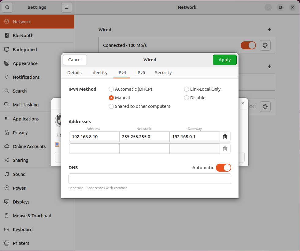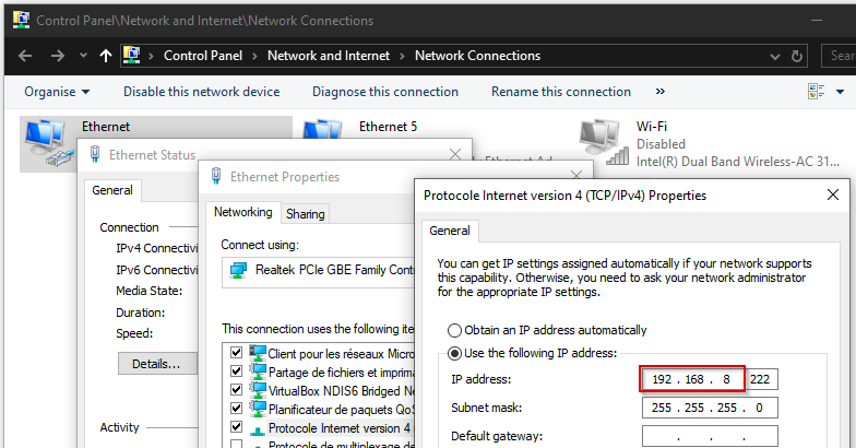 Your PC must be on the same network as the Gateway: 192.168.8.XXX. If that’s not the case, change the IP address of your PC. For Windows: