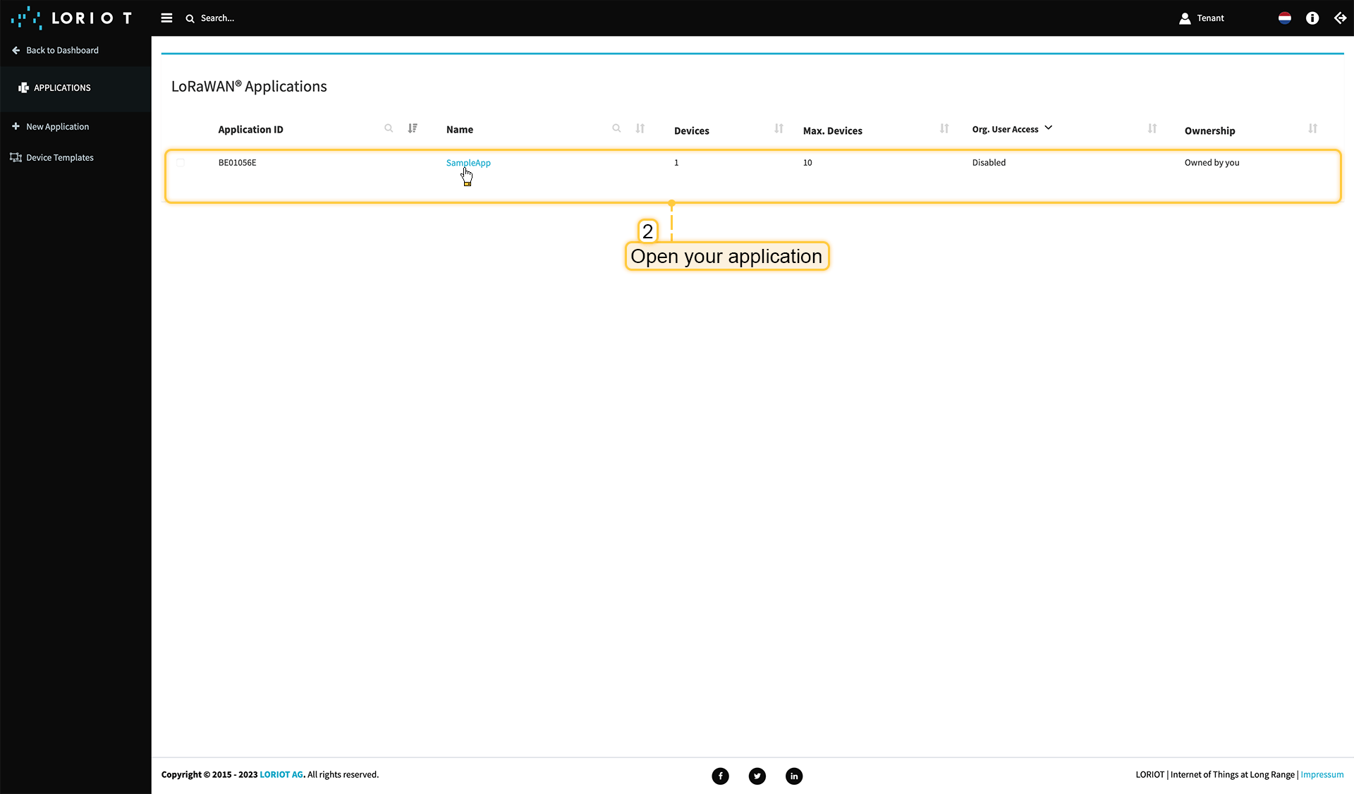 Login to Loriot server. We use eu2.loriot.io, but it depends on chosen region during registration. Go to the “Applications” page in left menu. Open your application, in our case it is “SampleApp”. Go to the “Enroll Device” page. Fill in the fields, with a configuration from your device. Then click the “Enroll” button. Uplink converter in IoT Hub integrationStep 1: Download the JSON file Download the JSON file with the uplink converter settings by clicking the button below. Download uplink converter for Loriot integration.