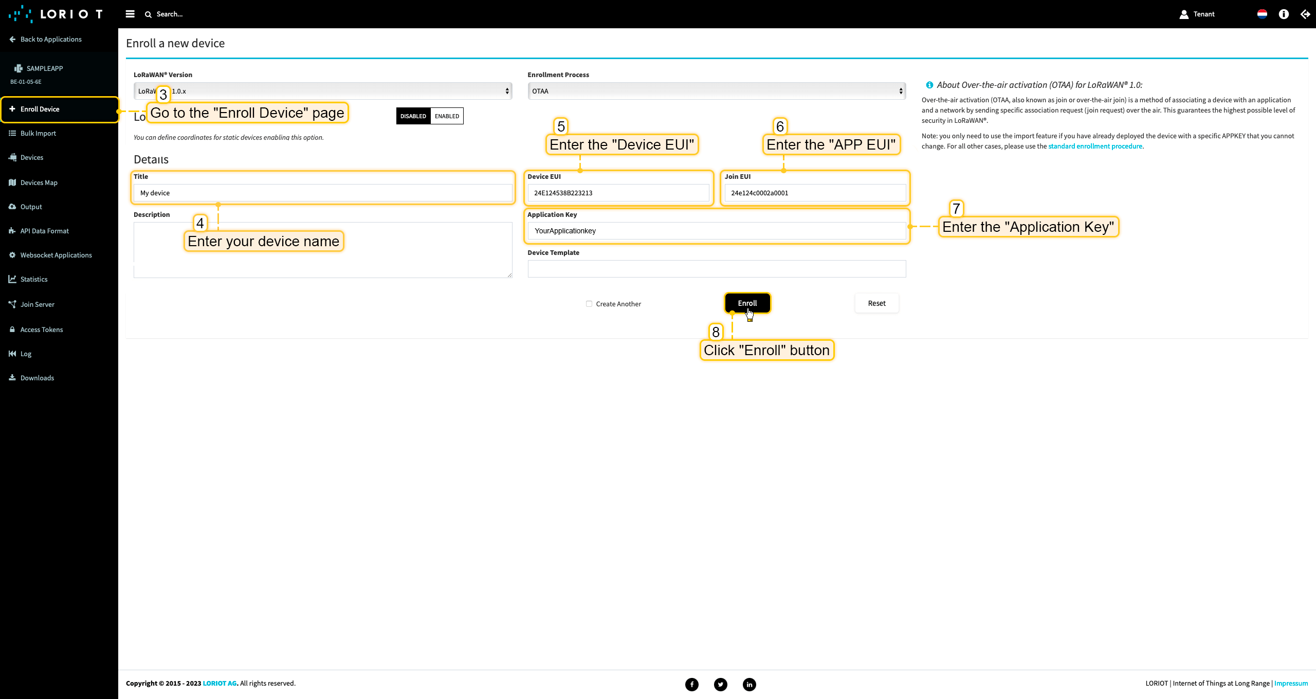 Add a device on the LoriotWe need to add a device on the Loriot. To add a device, you can follow next steps: