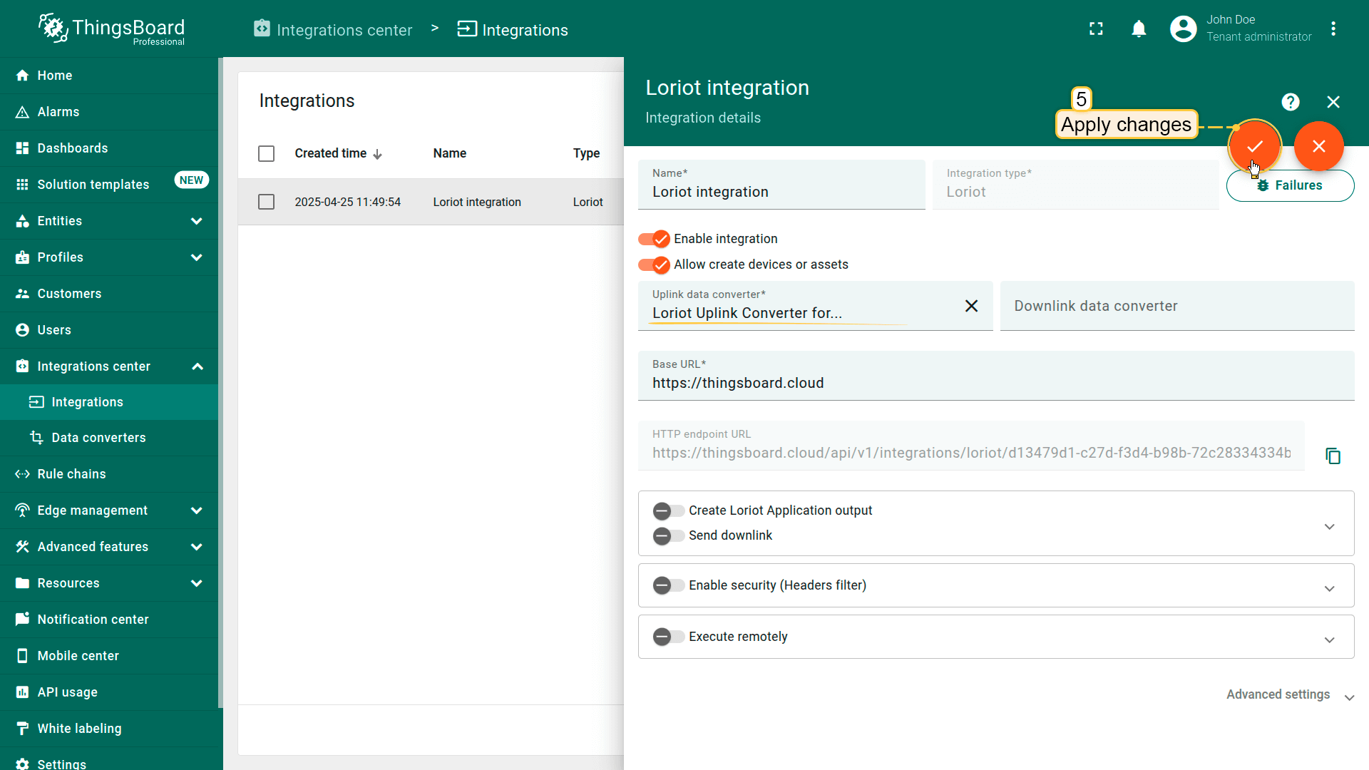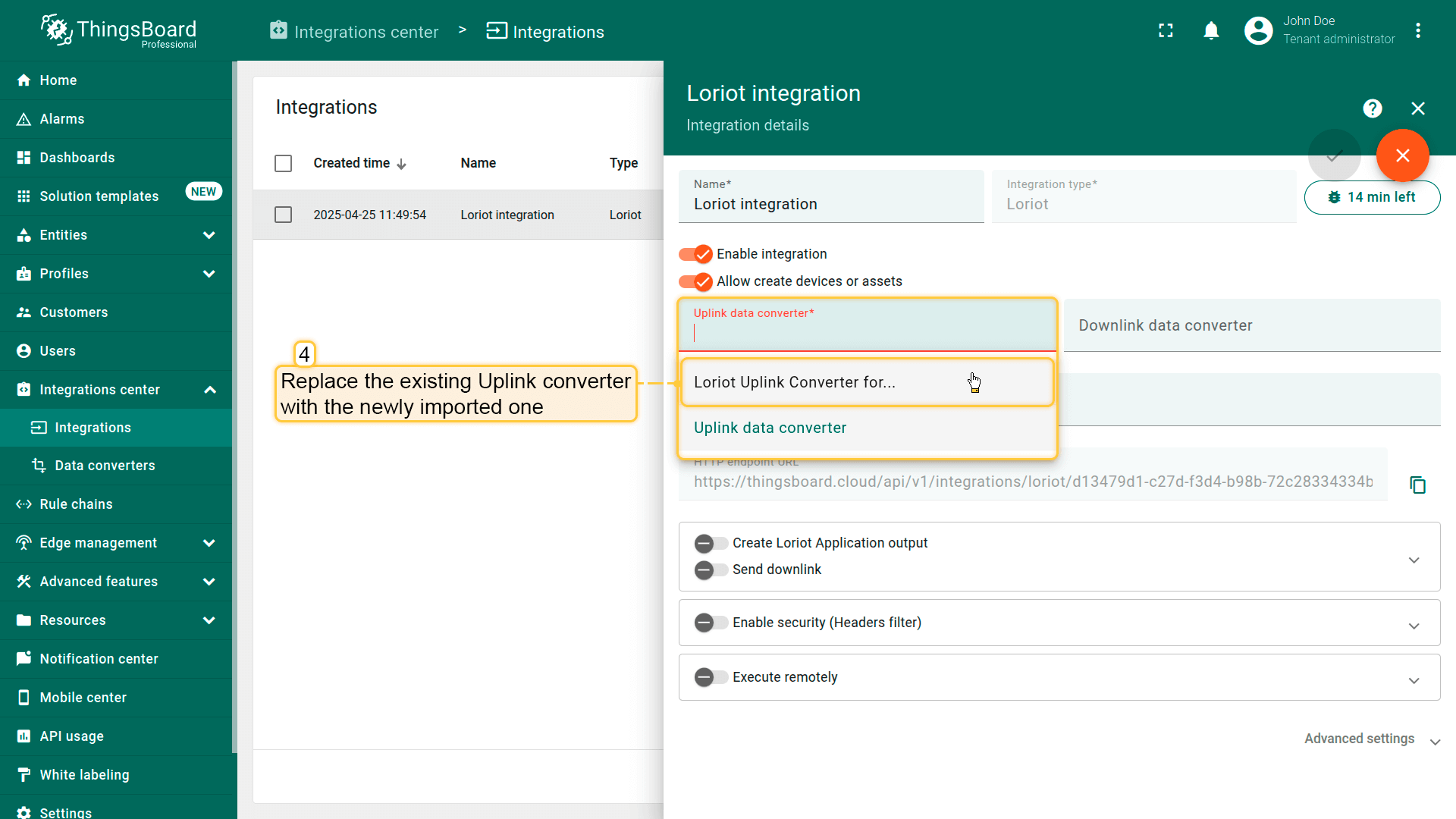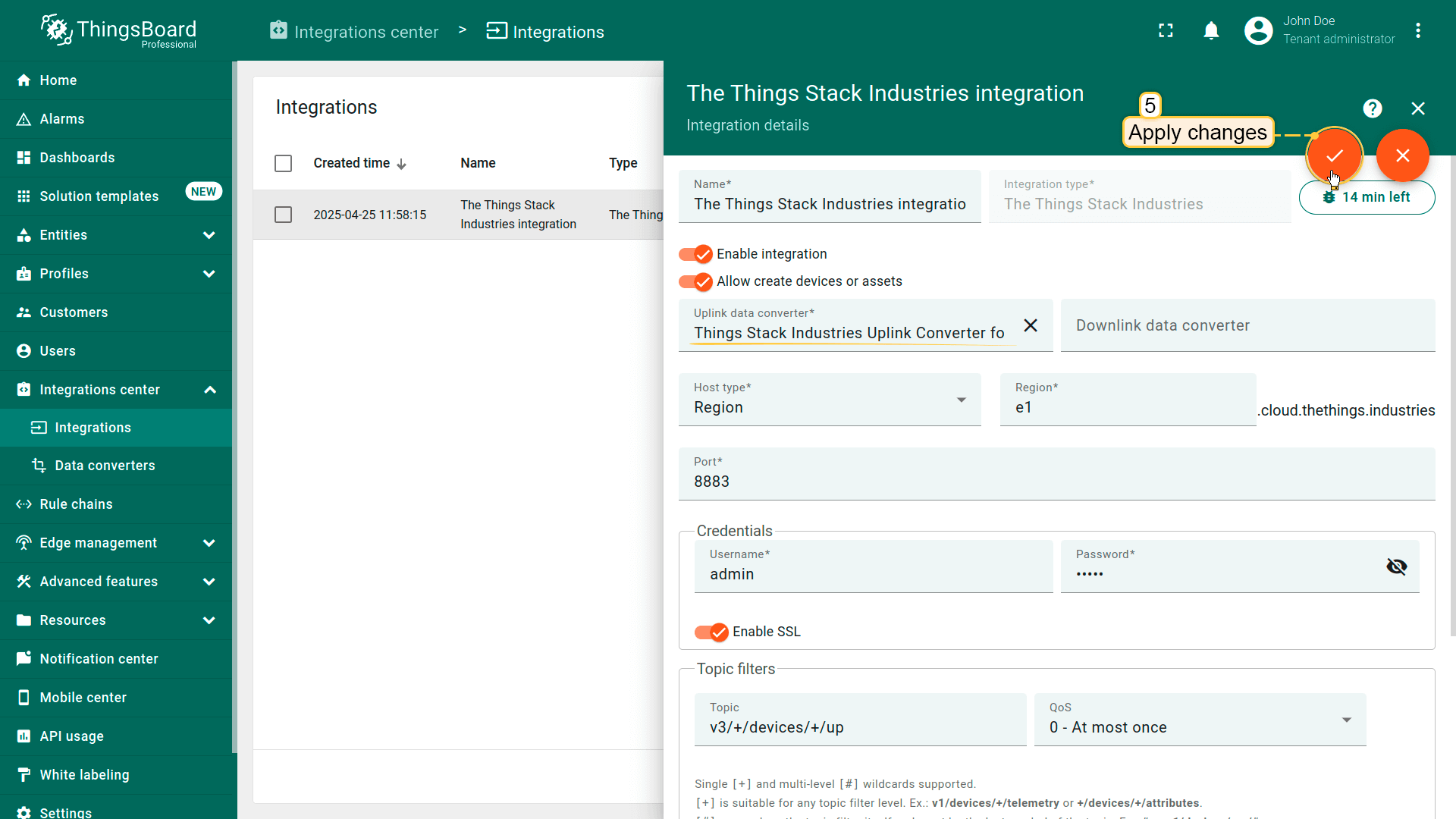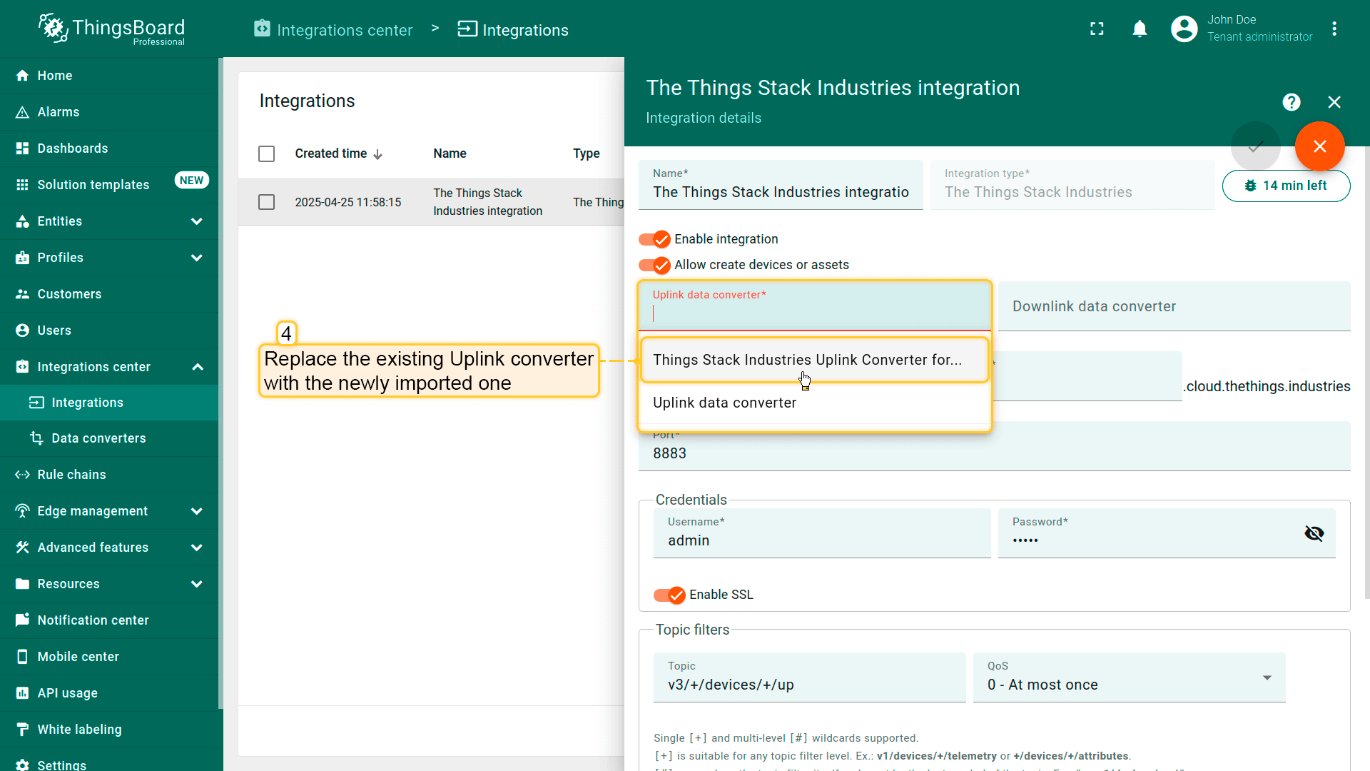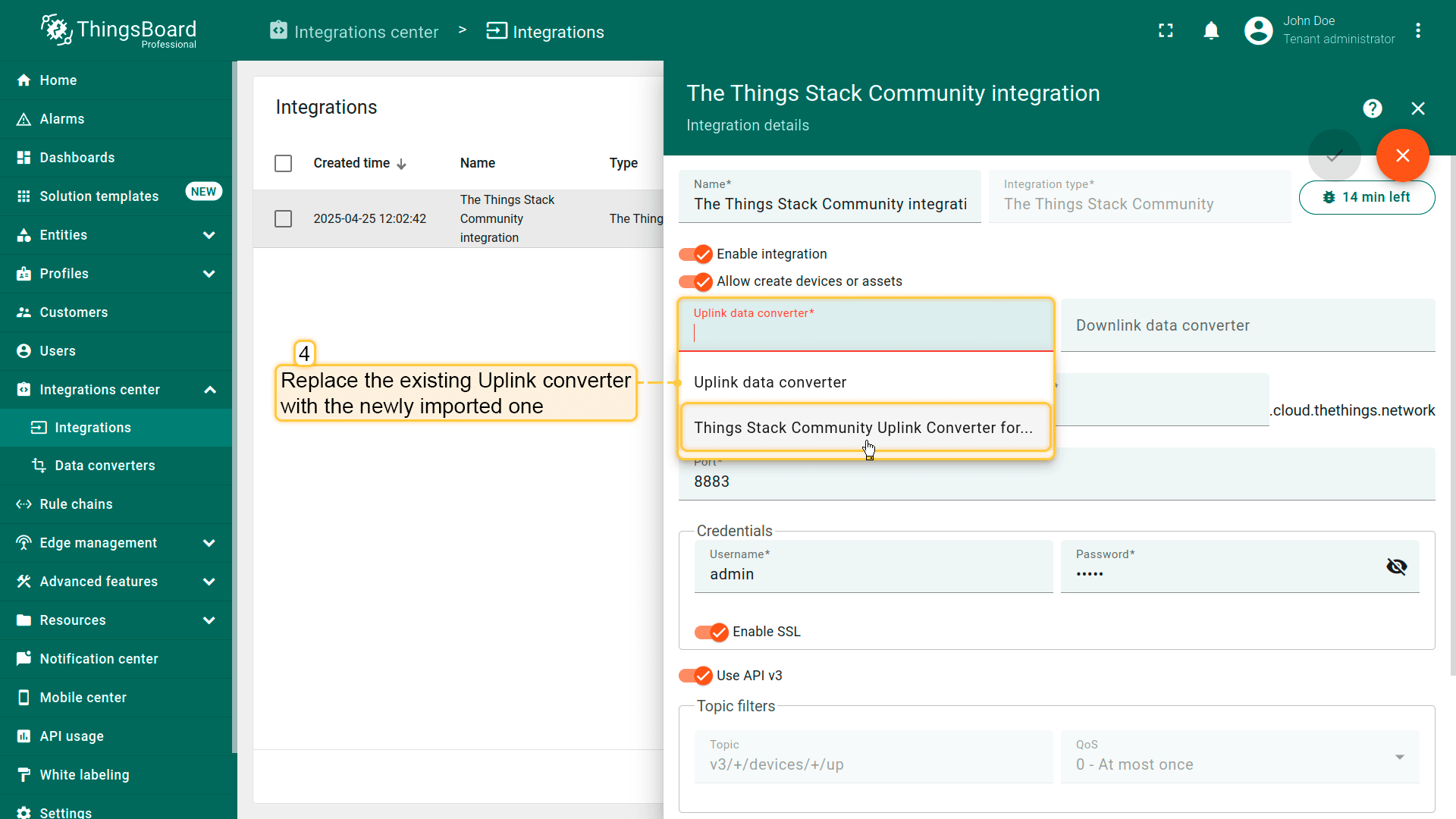 Now, let's update your The Things Industries integration to use the new uplink converter: