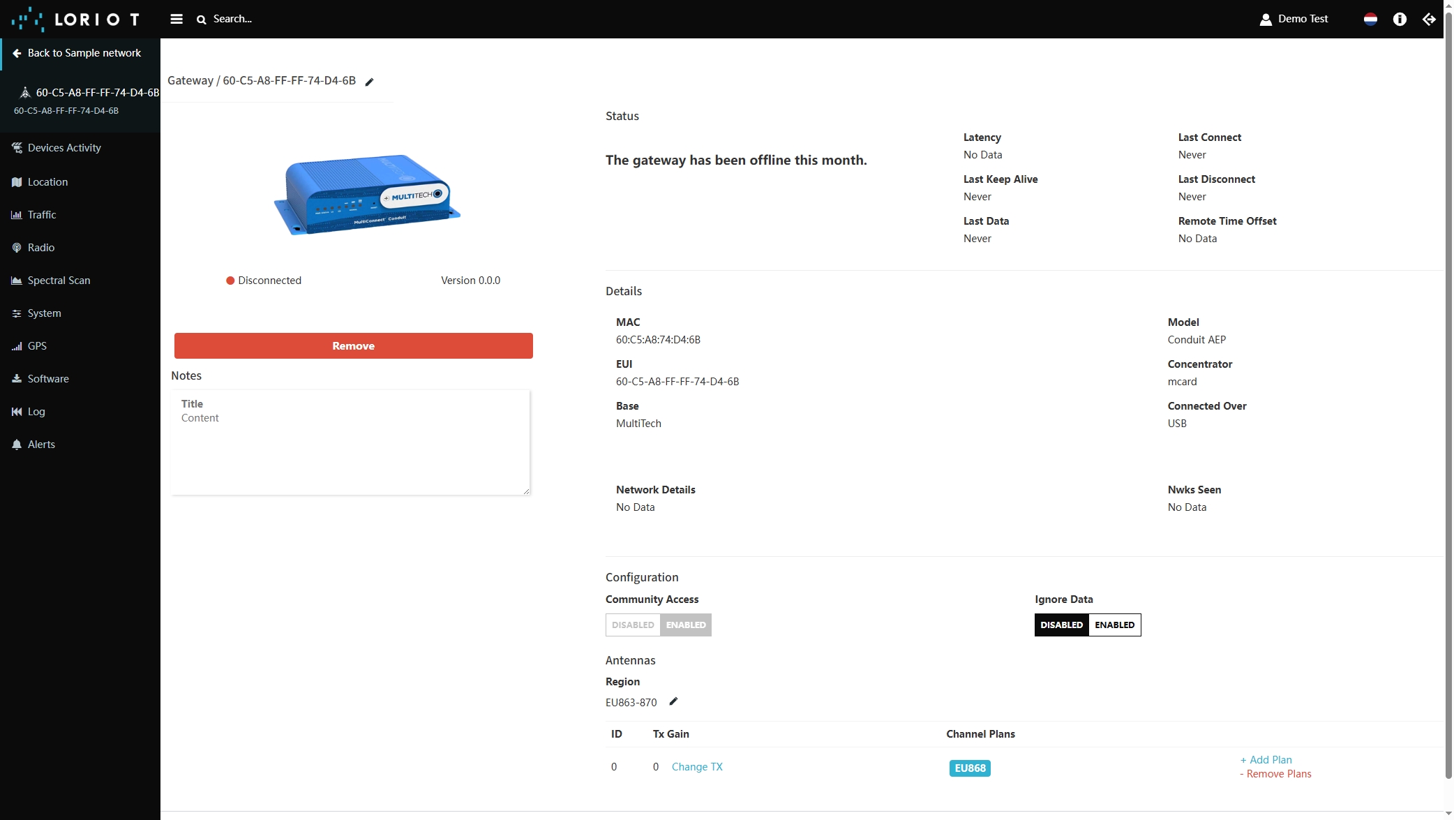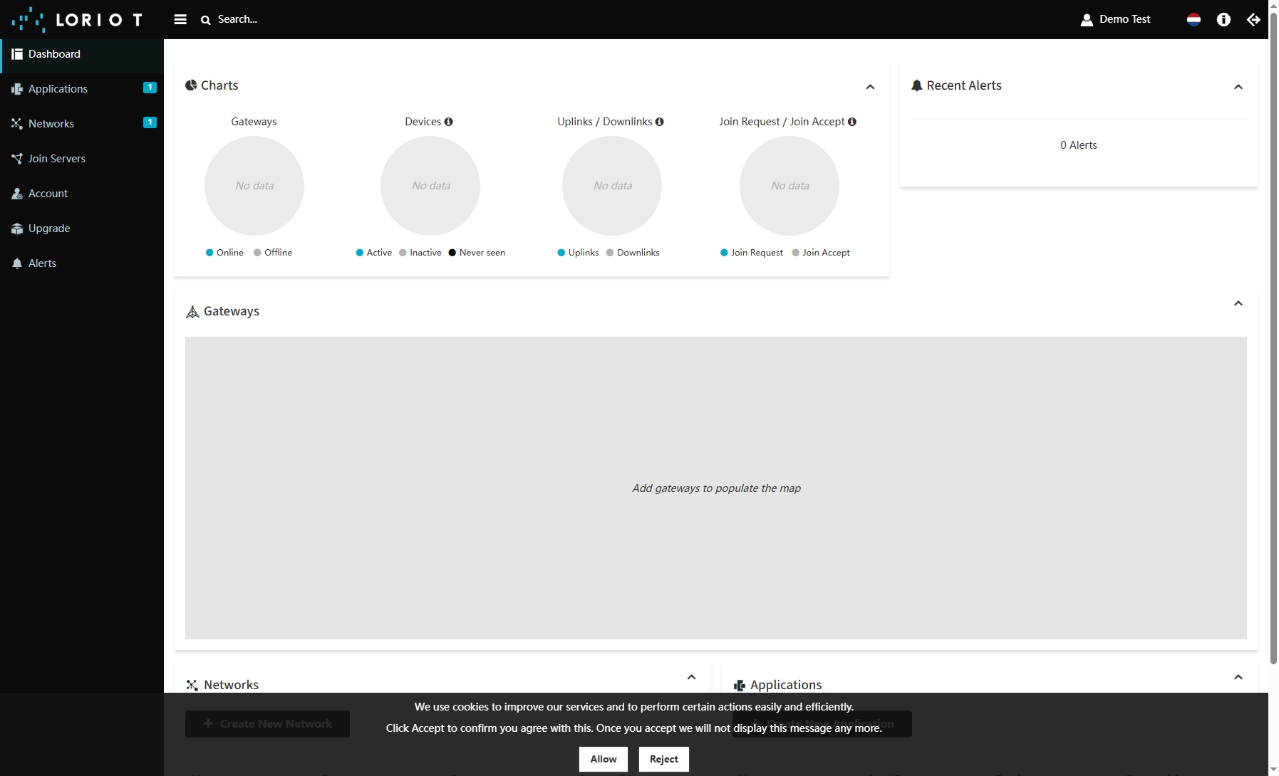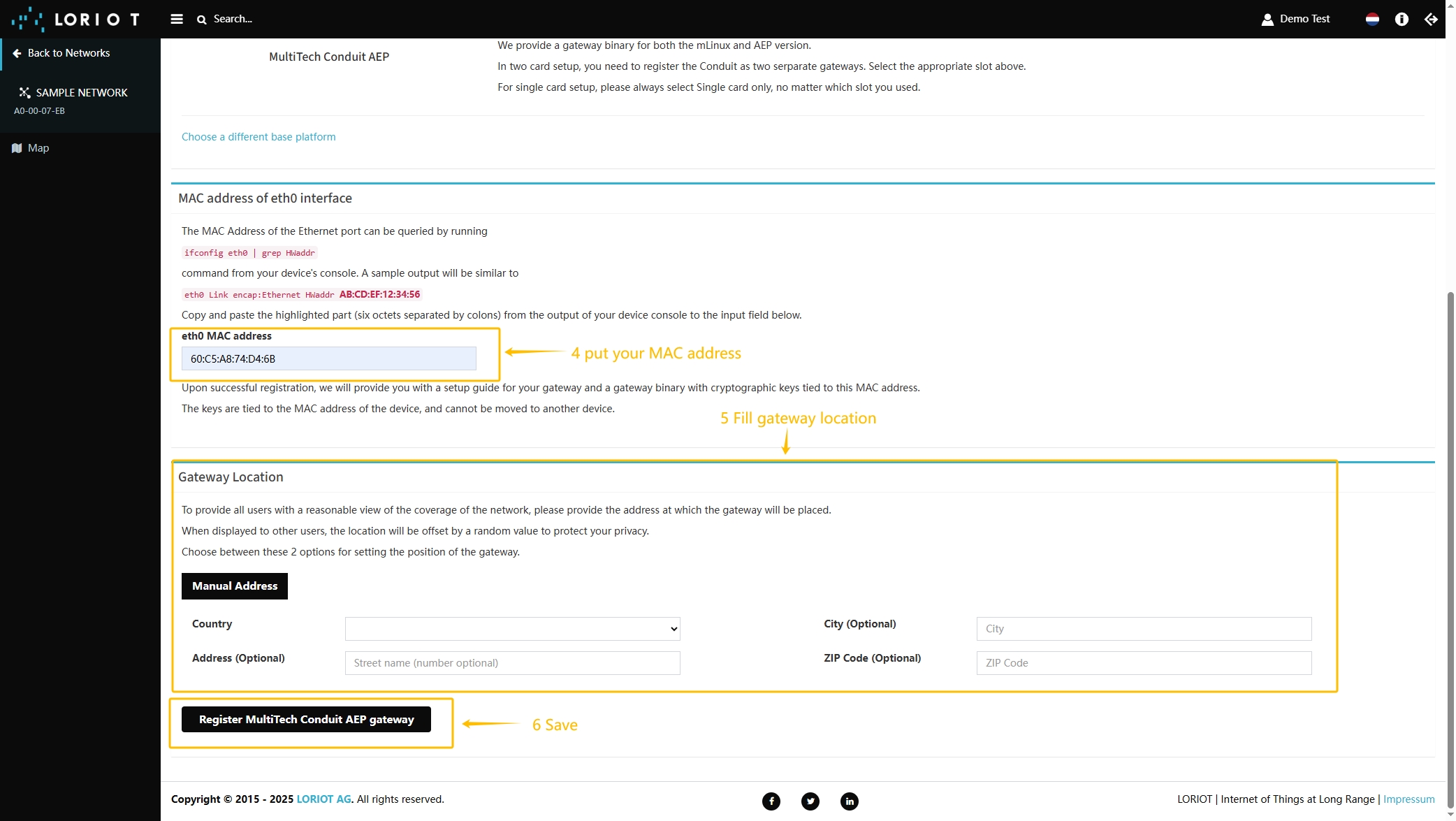 Login to Loriot server. Open the “Sample network ” or create a new one in the “Networks ” section.