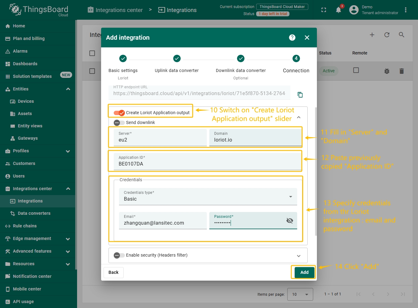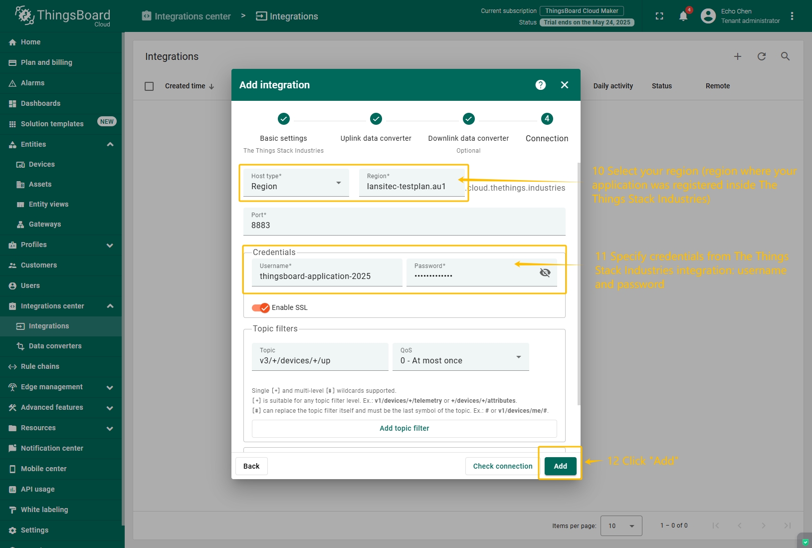 Username : thingsboard-application-2025-05@lansitec-testplan (use Username from integration on The Things Stack Industries);