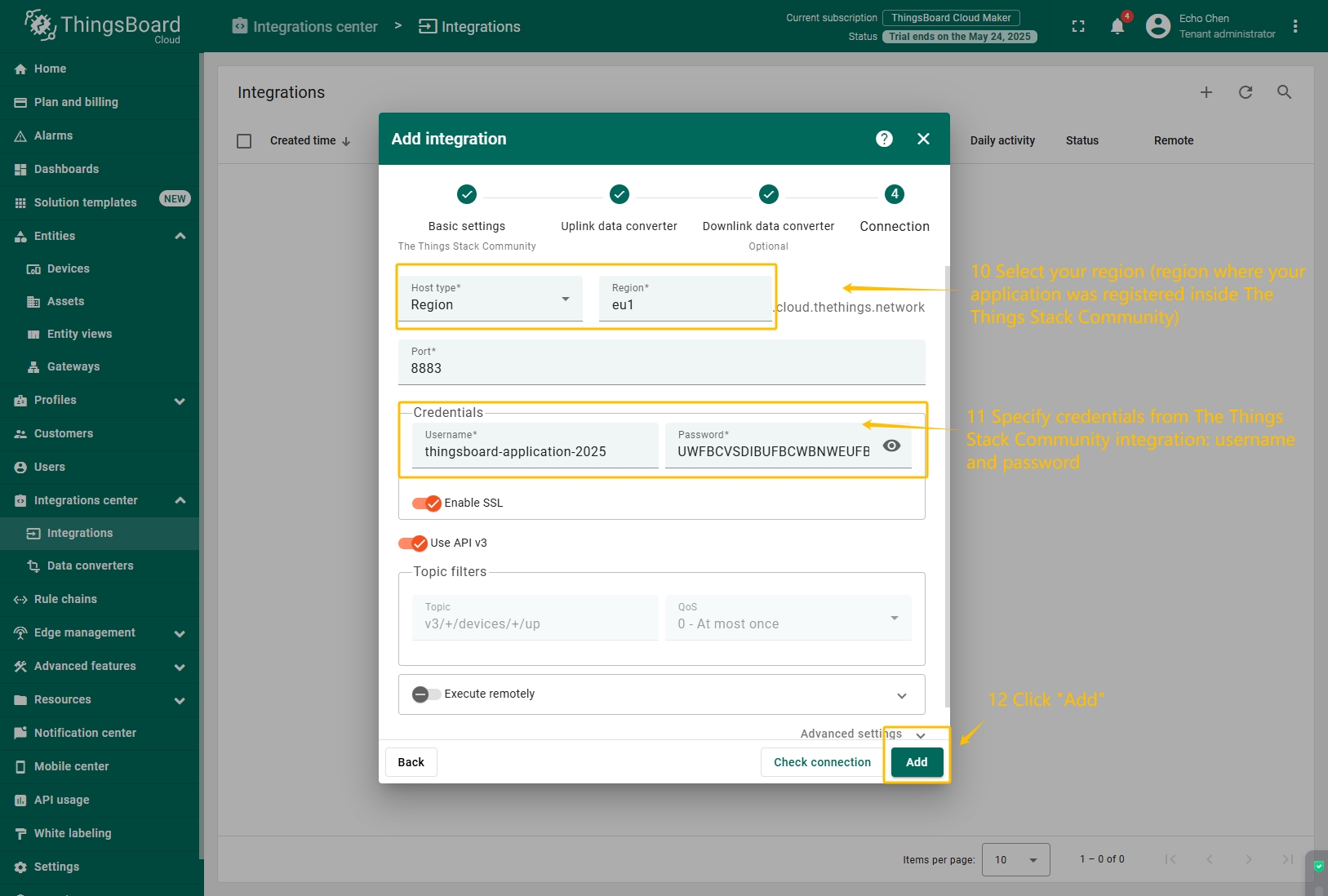 Username : thingsboard-application-2025-06@ttn (use Username from integration on TTS)