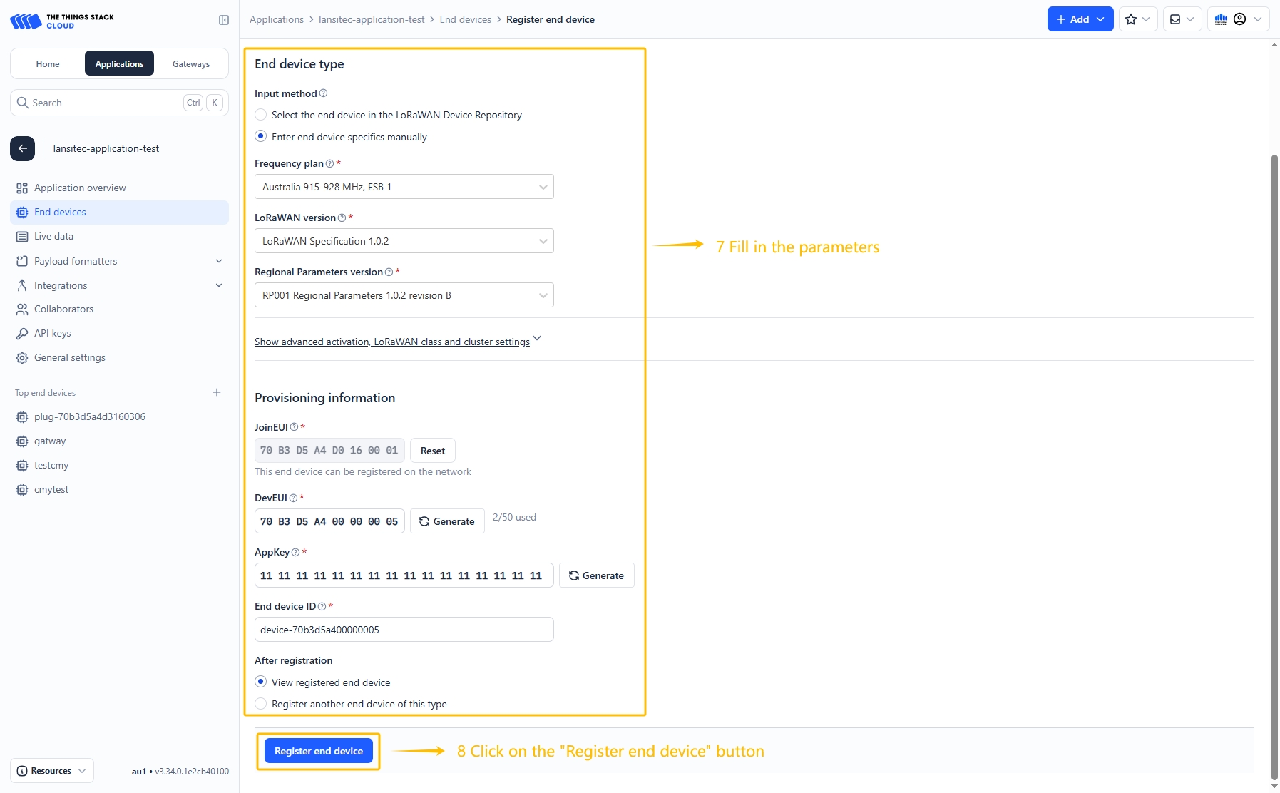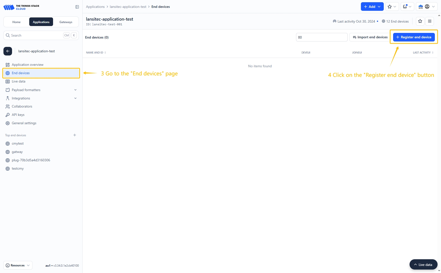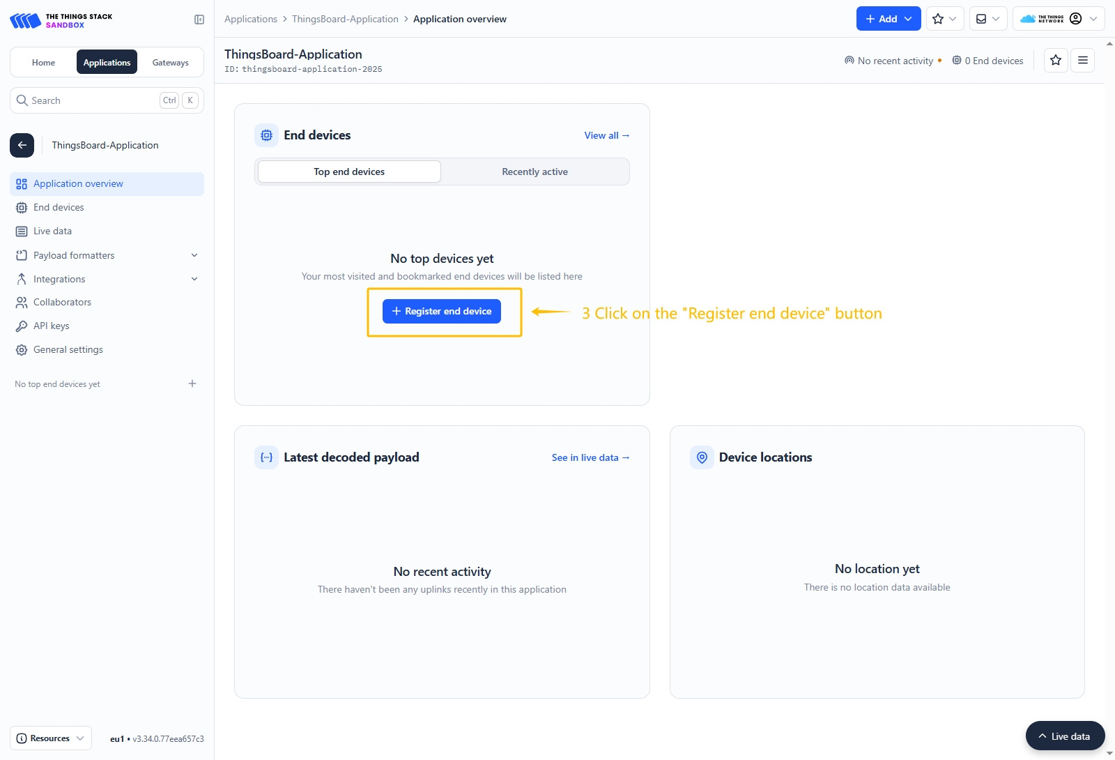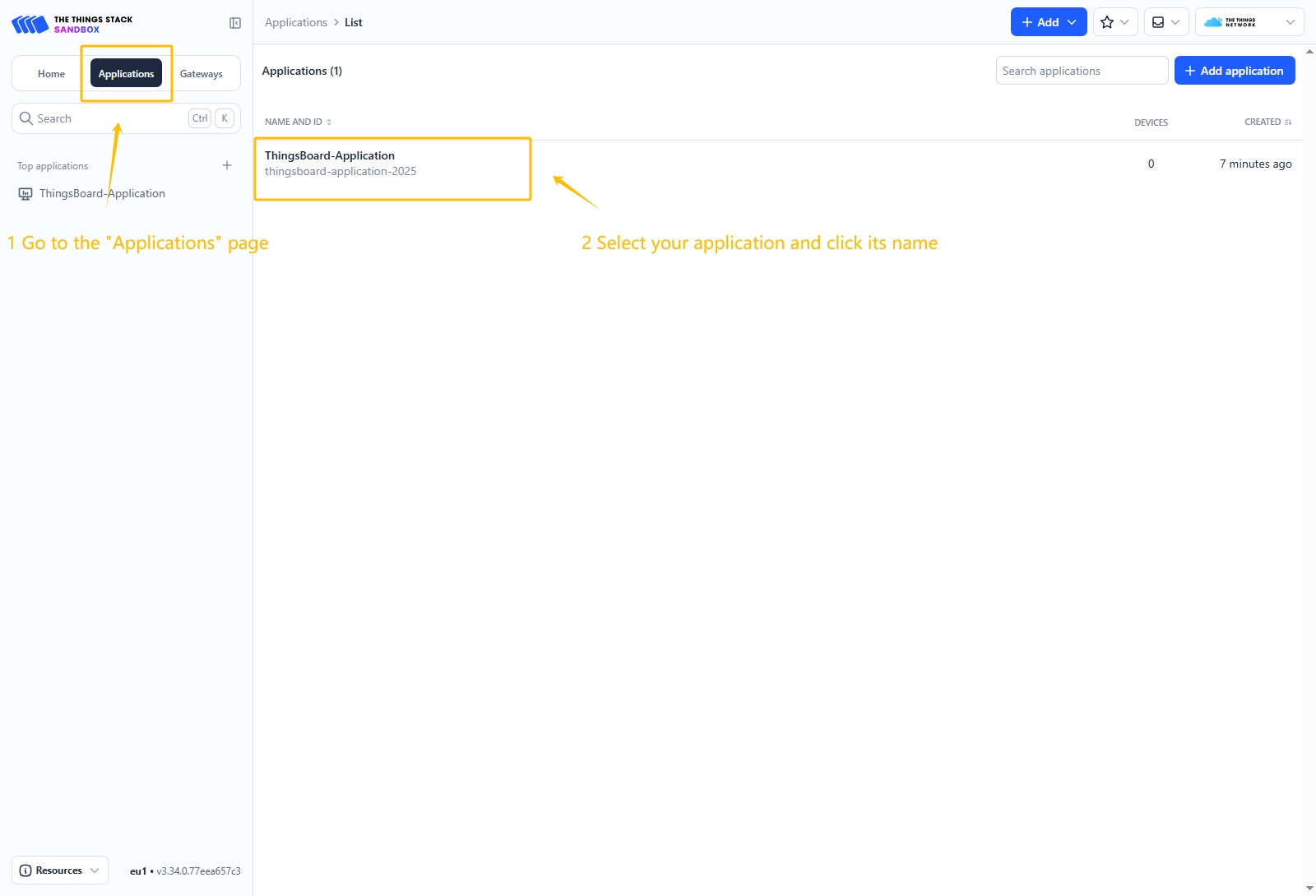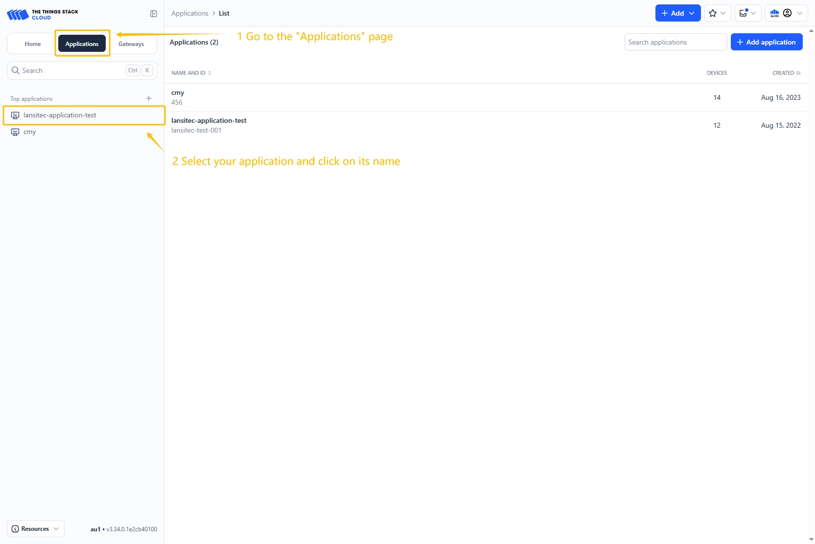 Region : eu1 (region where your application was registered inside The Things Stack Community)