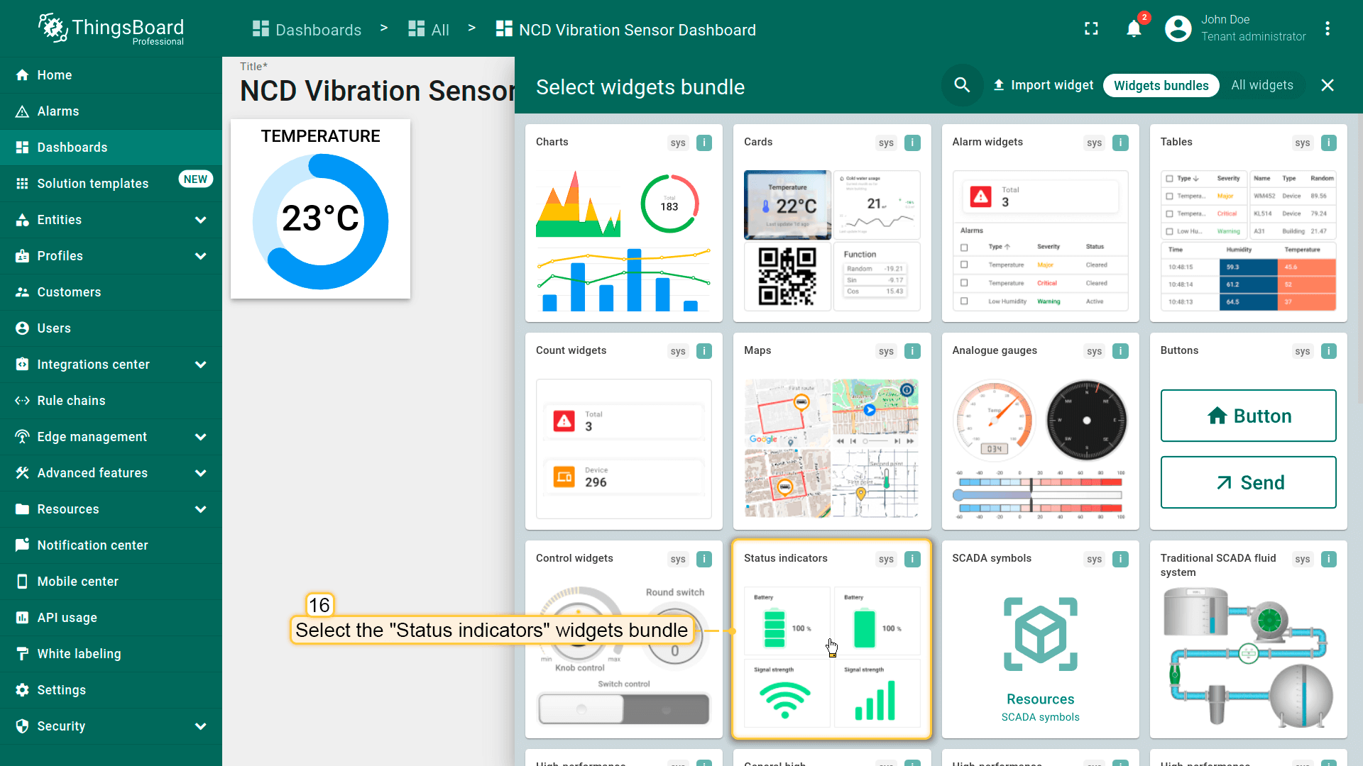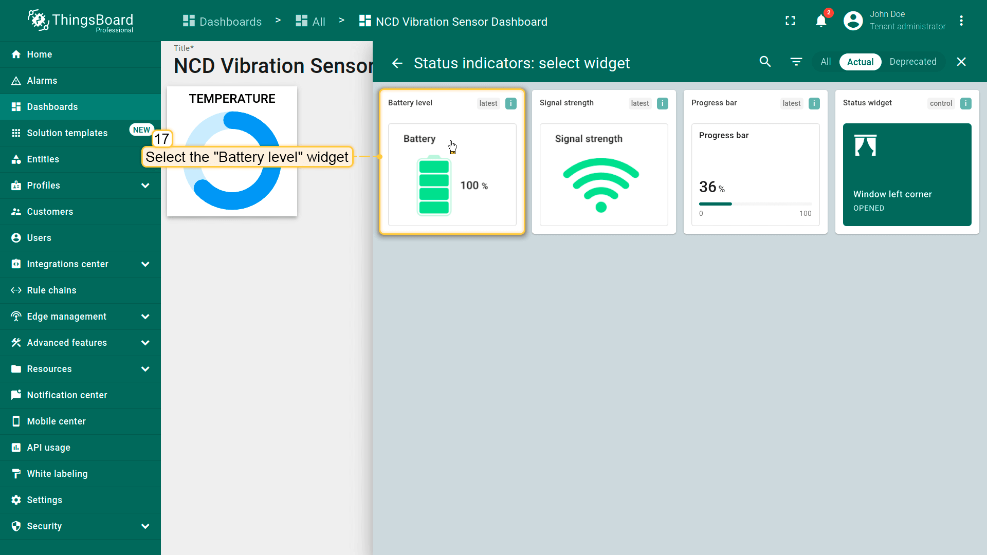 In this case, we will add a second widget to display the sensor's battery percentage. Go to the “Status indicators” widget bundle;
