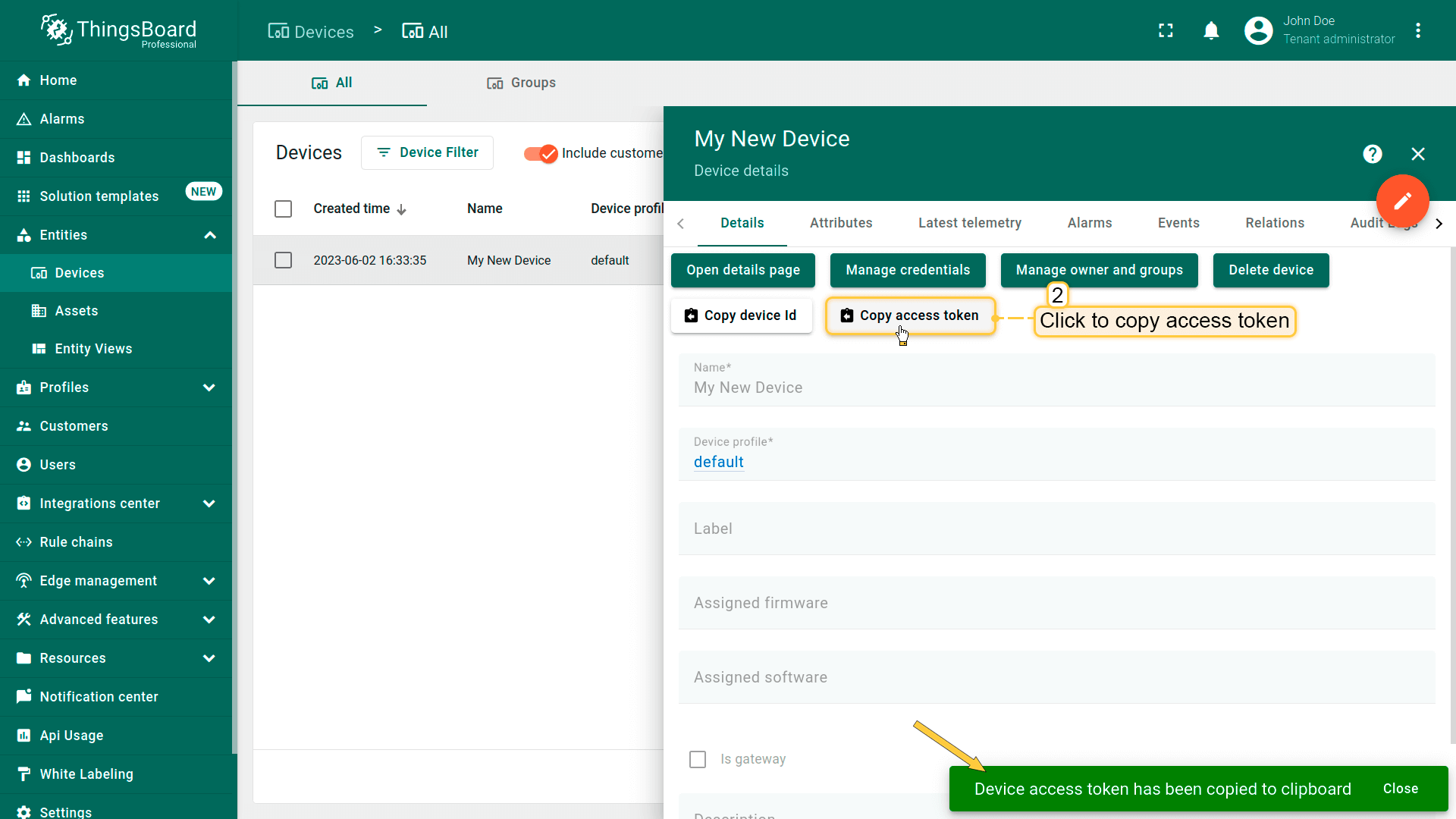 Click “Copy access token”. The token will be copied to your clipboard. Please save it in a safe place.
