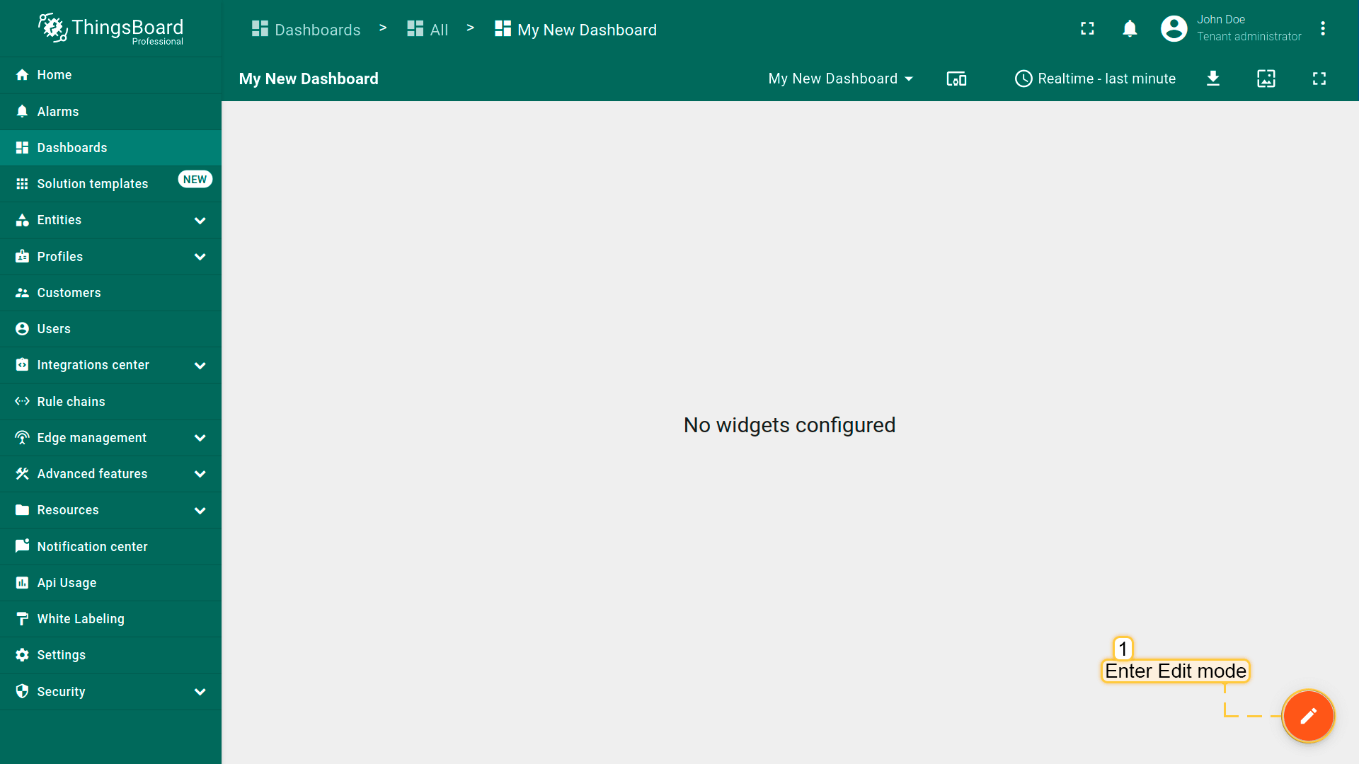 Explore the platform documentation to learn more about key concepts and features. For example, configure alarm rules or dashboards.