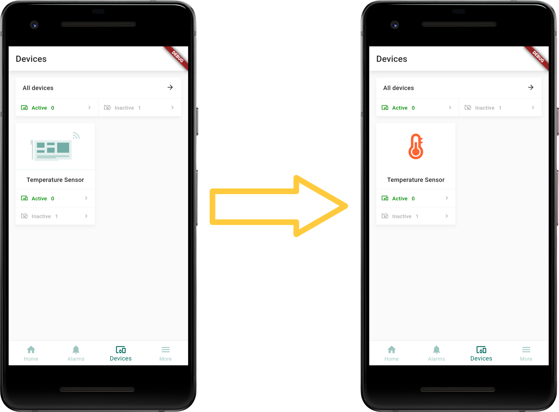IoT Hub allows configuring device icons for each device type/profile. Device icon is configurable in the device profile form: