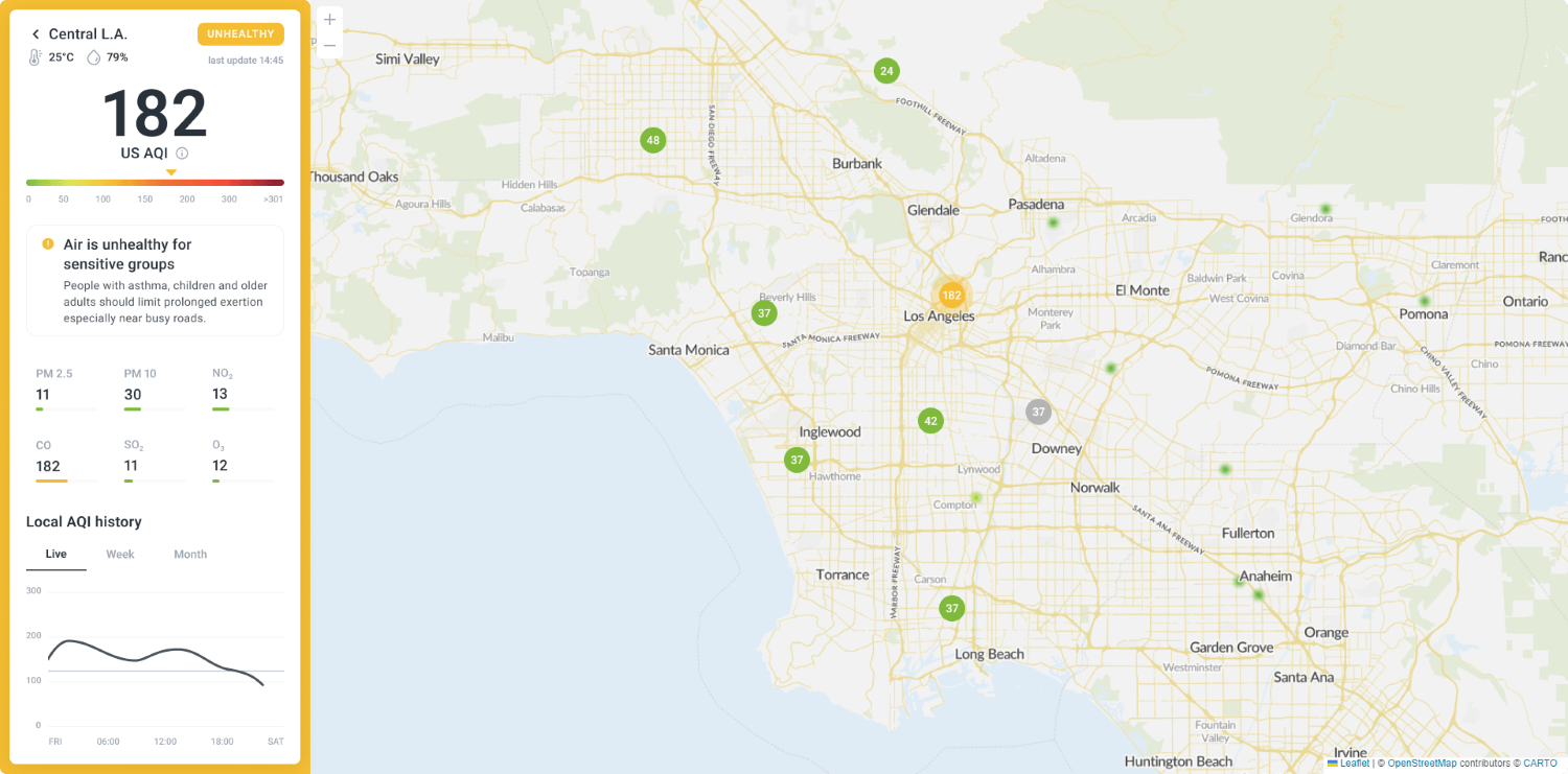 • see the history of a specific sensor with AQI level in the current, weekly, and monthly range;