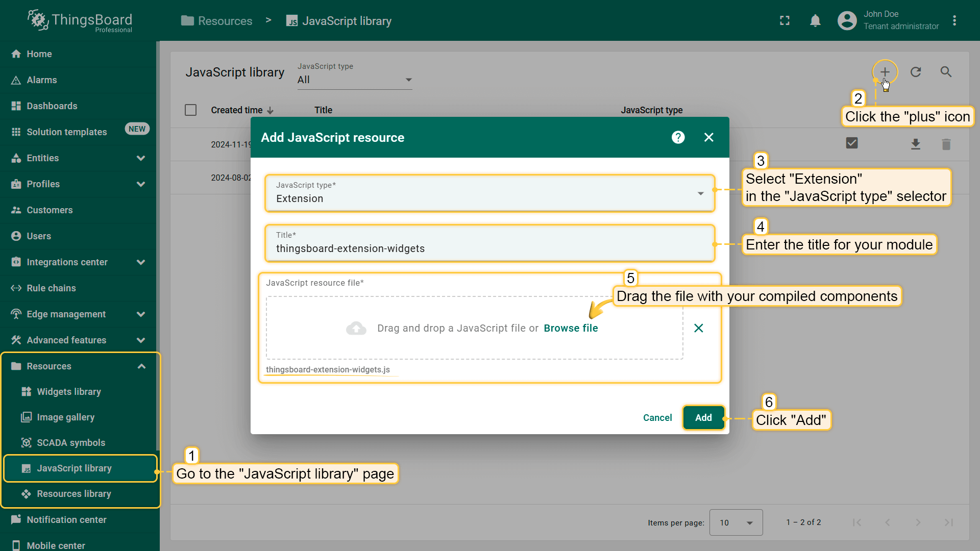 First of all, you need a file with your compiled components. By default, it is called thingsboard-extension-widgets.js. All instructions on how to create it can be found inside the README file to ThingsBoard extensions.