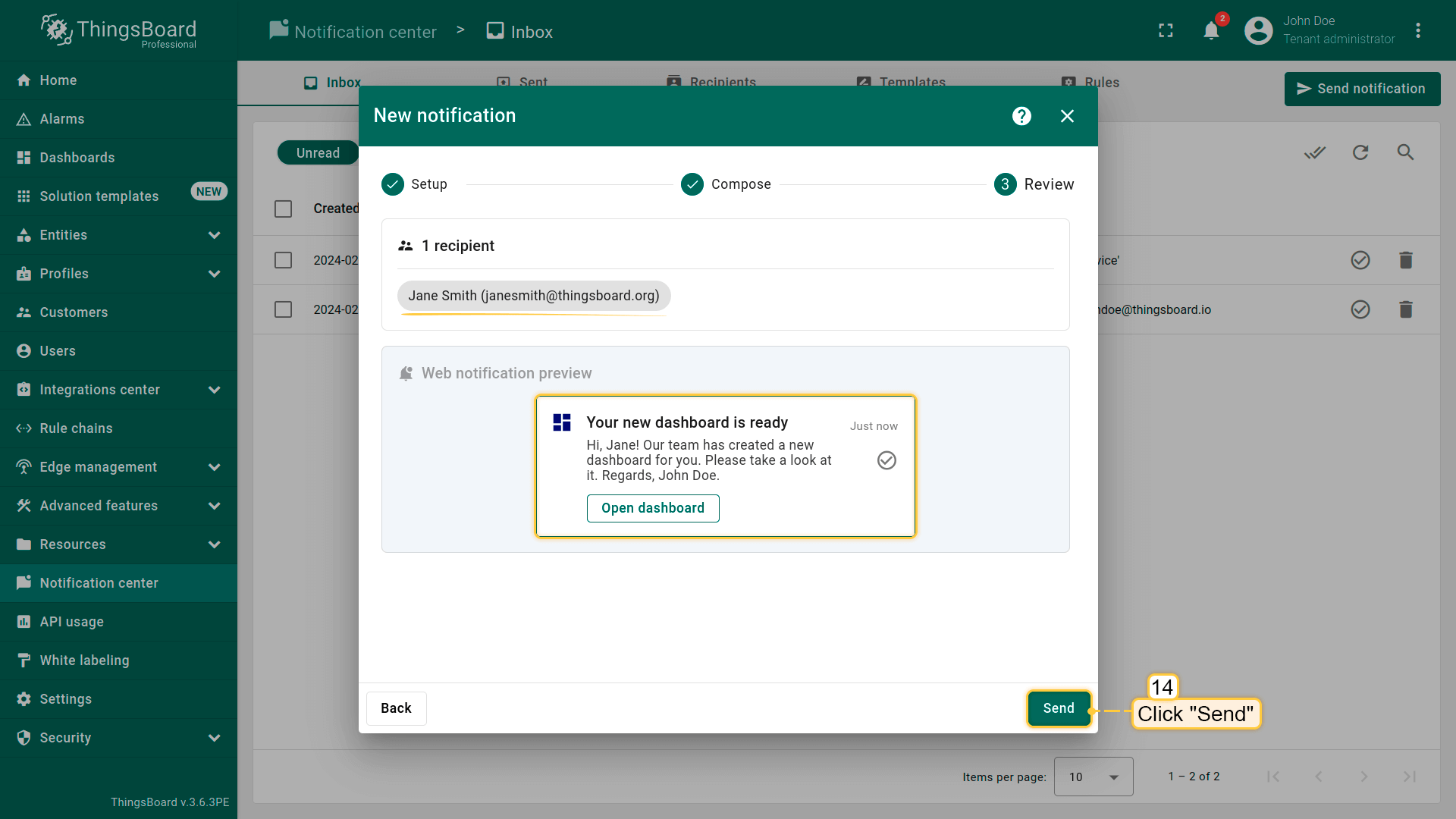 - In this window, you can see how the notification will look and also view the list of notification recipients. Click "Send";