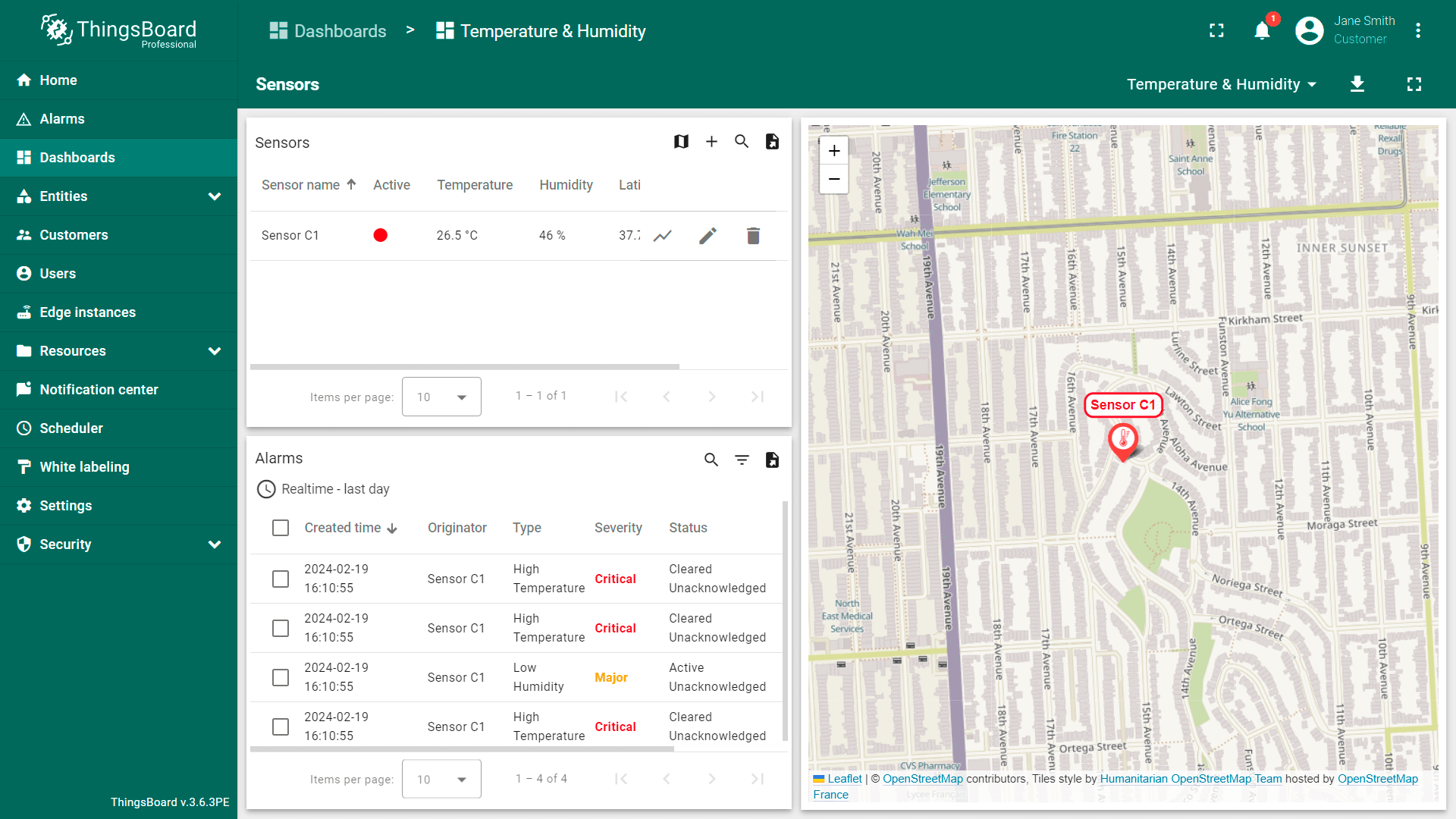 - alarmOriginatorName - the name of the alarm originator, e.g. ‘Sensor T1’;