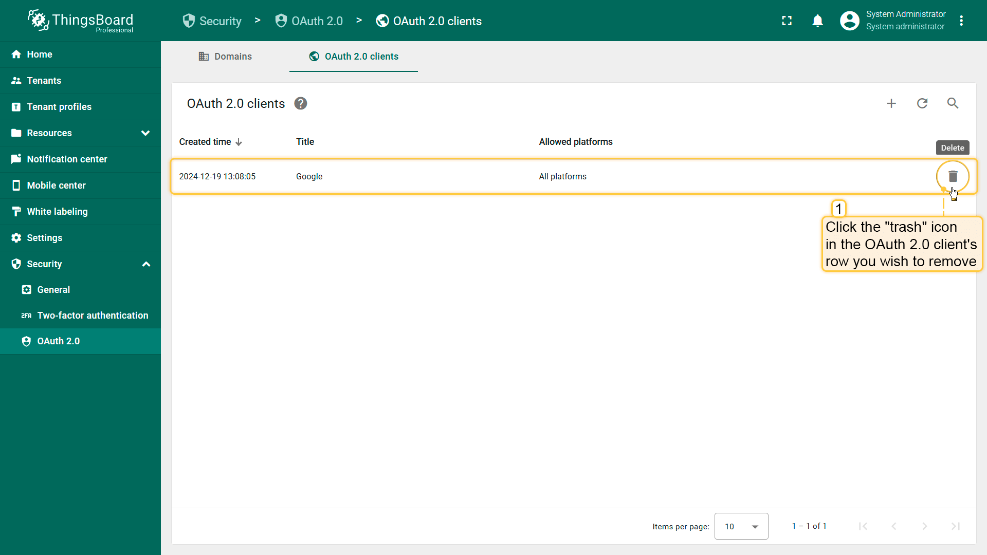 Deleting OAuth 2.0 client