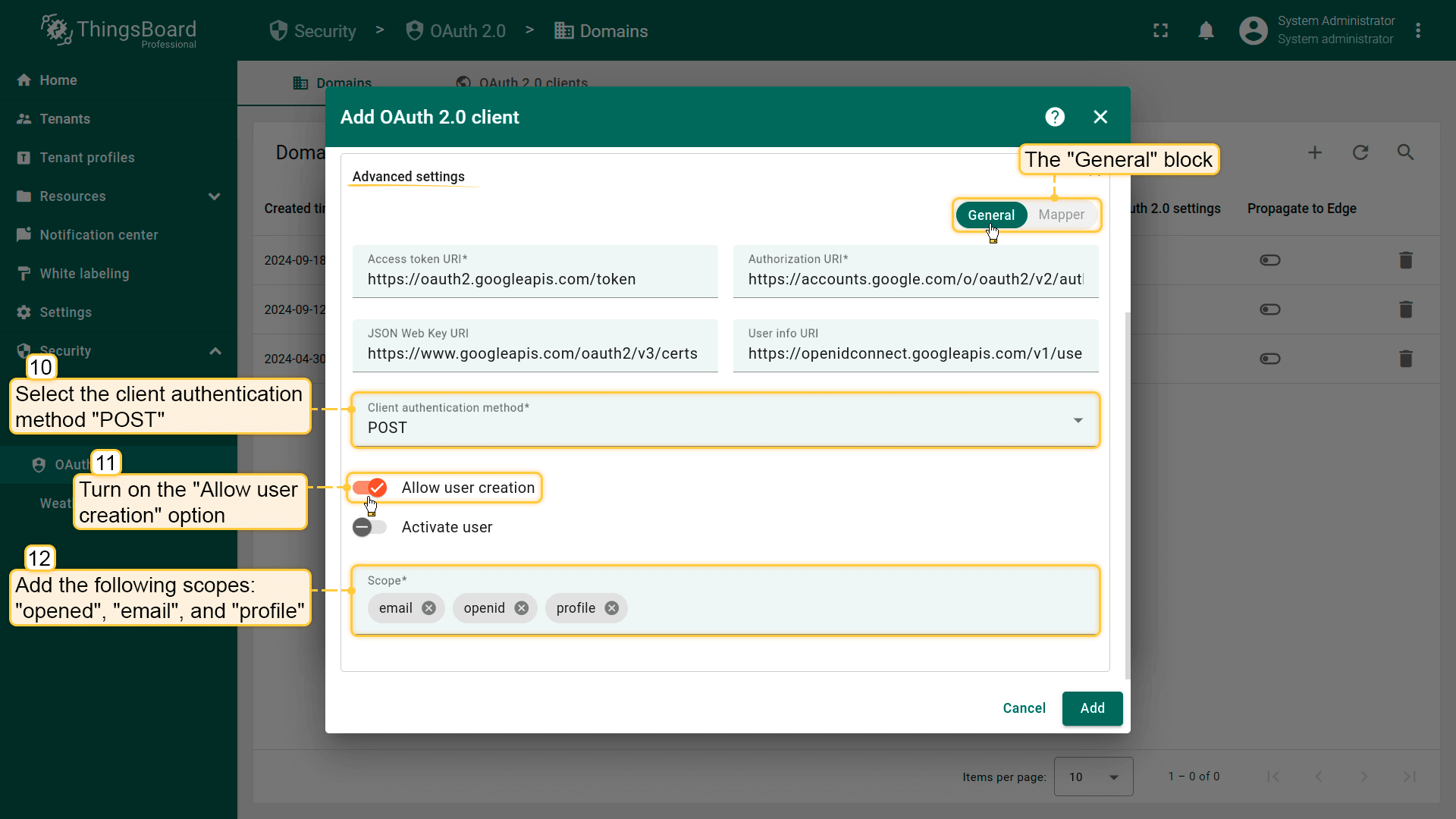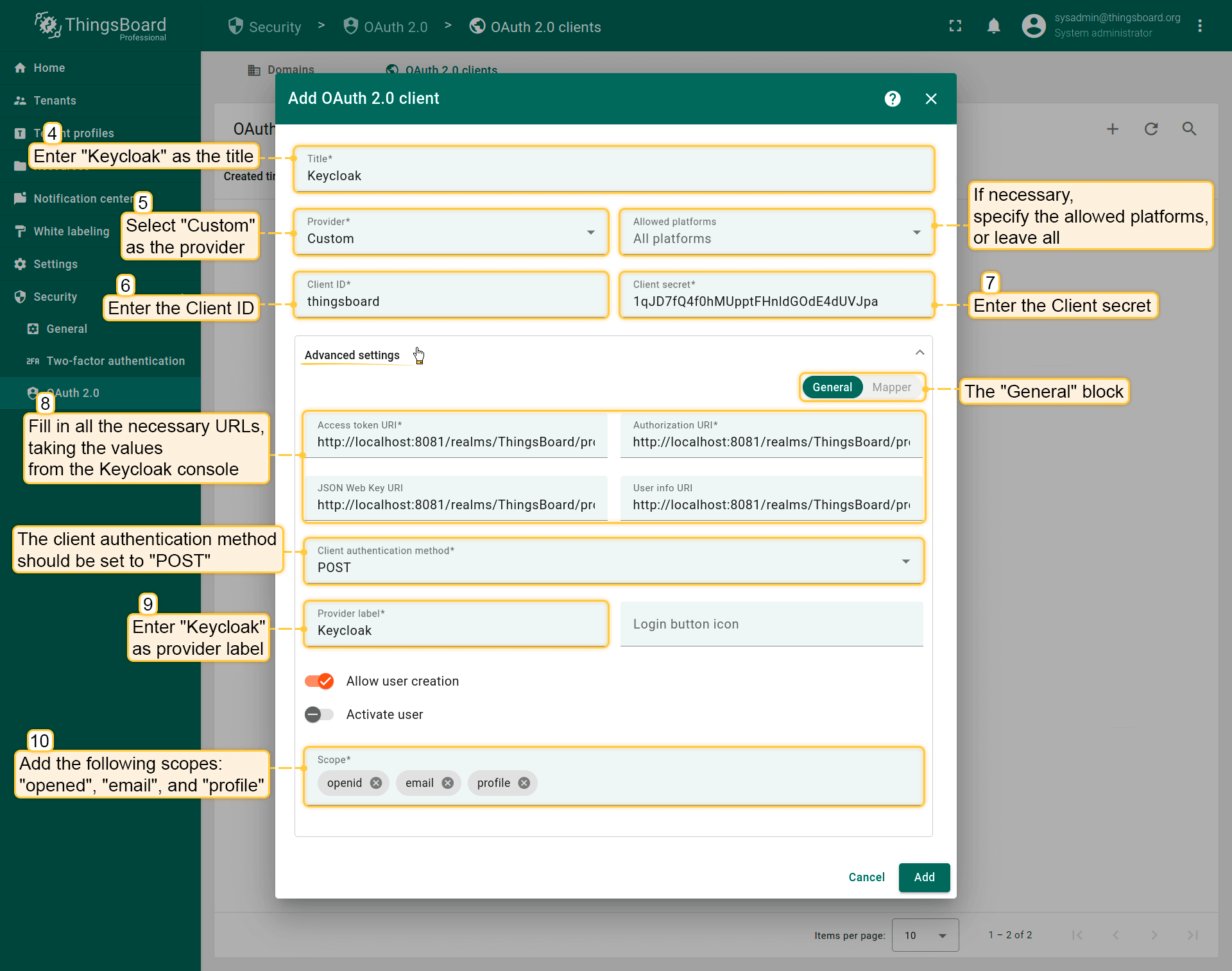 Adding OAuth 2.0 client