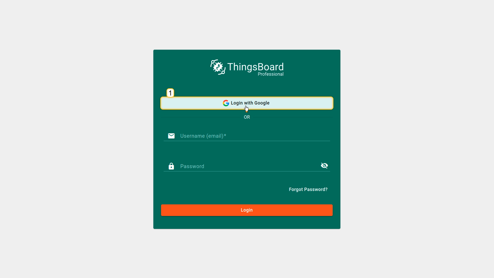Now, navigate to the IoT Hub login screen. We will see an additional “Login with Google” option. Select one of your Google accounts. You are now logged into IoT Hub using your Google email as a Tenant Administrator.