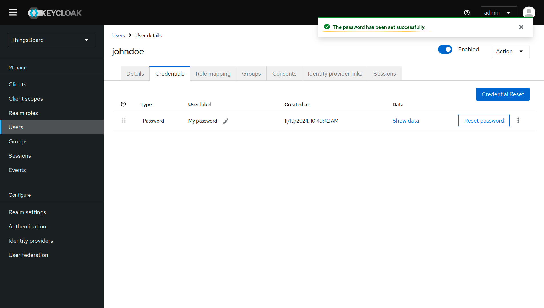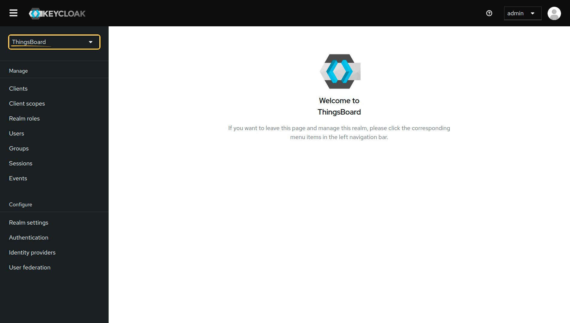 - Log in to the Keycloak Admin Console using “admin” as username and password;