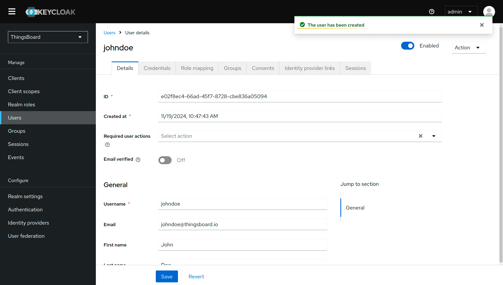 Now add the user. Only the added users will be able to authenticate via Keycloak. Use these steps to create a user: