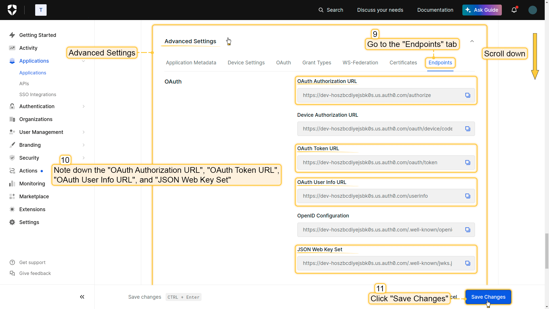 - Use endpoint configuration file to find the current values for “Access Token URI,” “Authorization URI”, “JSON Web Key URI”, and “User info URI”. Fill the corresponding fields with these values;