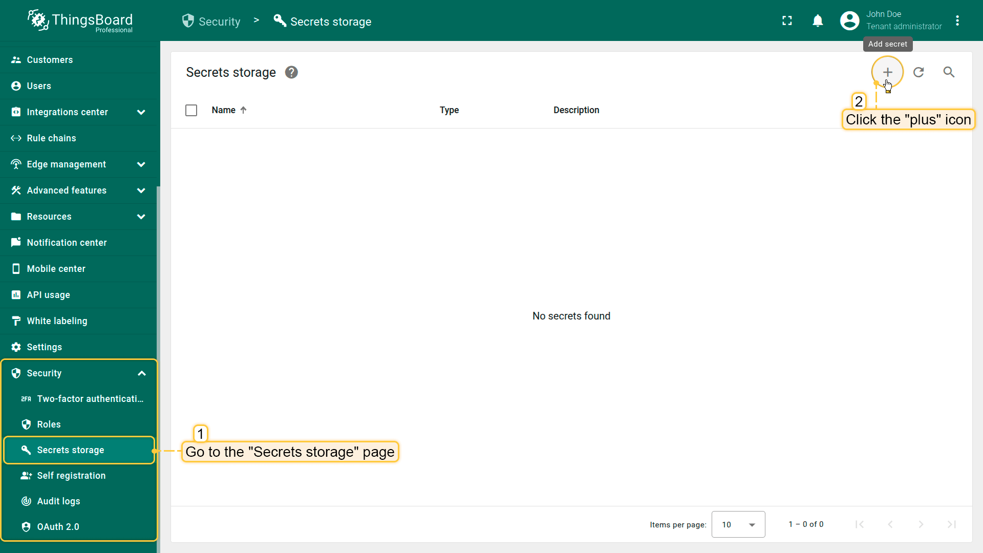 Once created, Secrets can be safely used in integrations and rule nodes, eliminating the need to enter sensitive data directly in the configuration. This greatly enhances system security and reduces the risk of unauthorized access or data leakage.