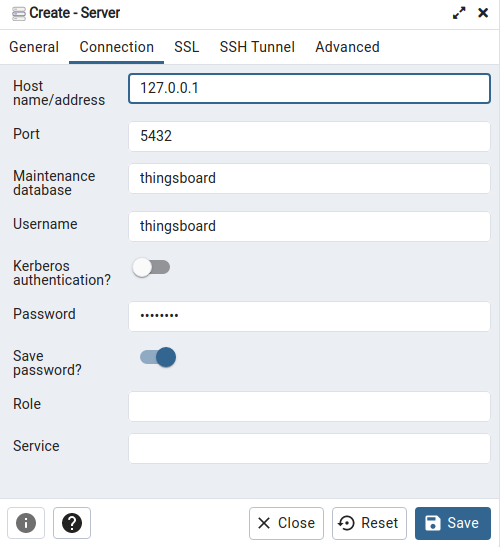 The default PostgreSQL user is thingsboard, default password is postgres. Please, put your credentials here instead of default.