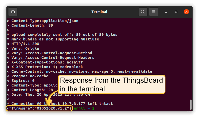 Send the uplink message again. We will receive a response from the IoT Hub in the terminal: