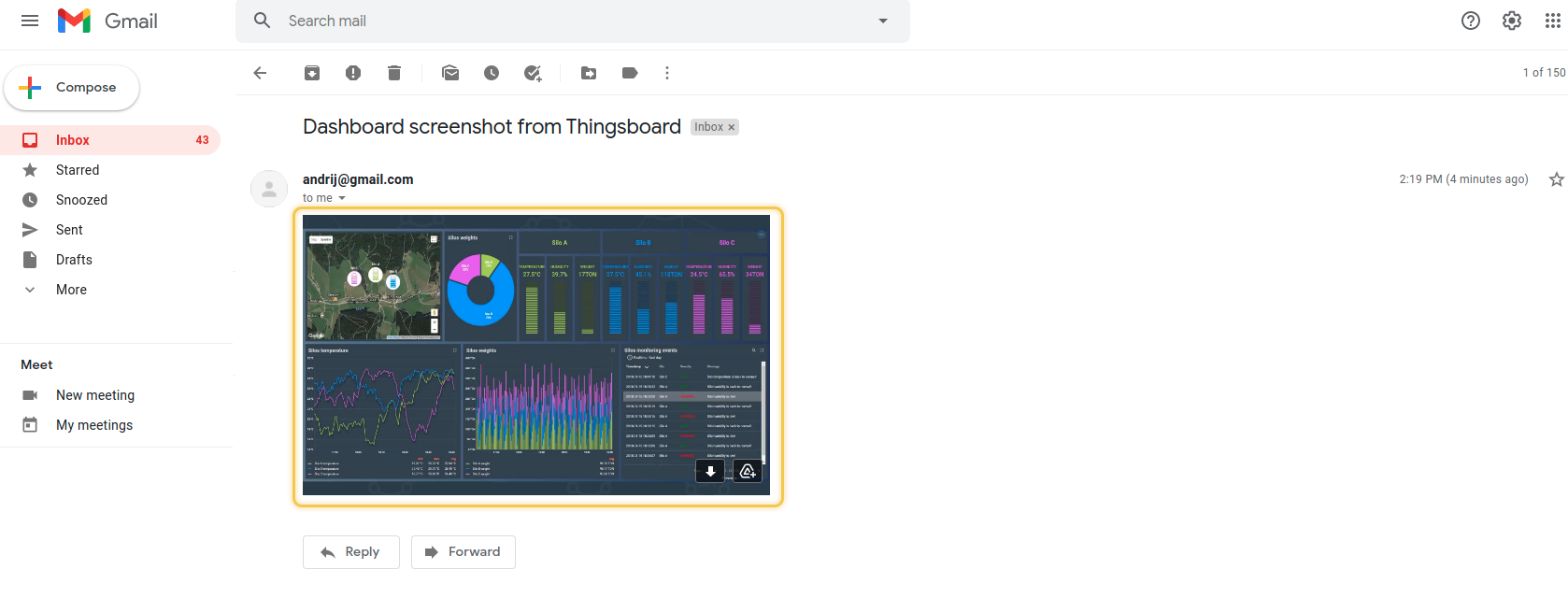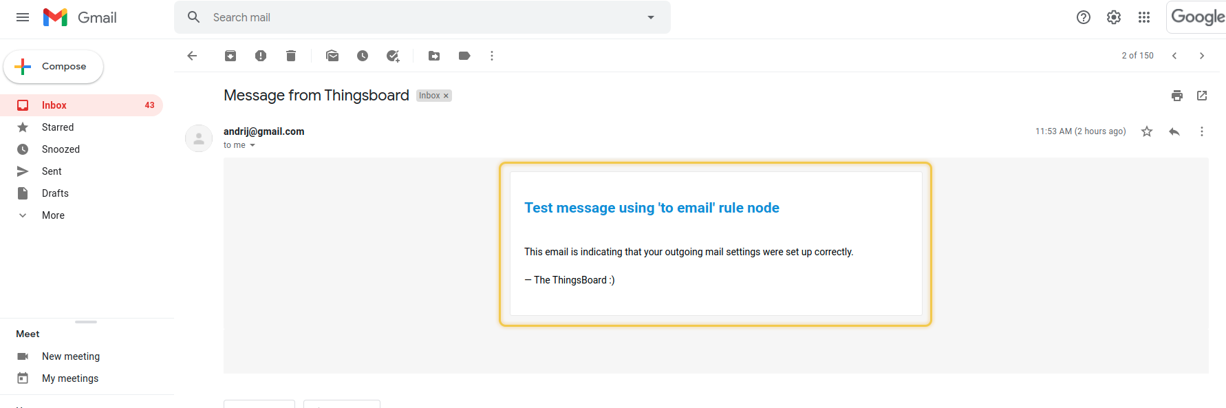 Check destination email to see the result of the “to email” node work. We got the next message: