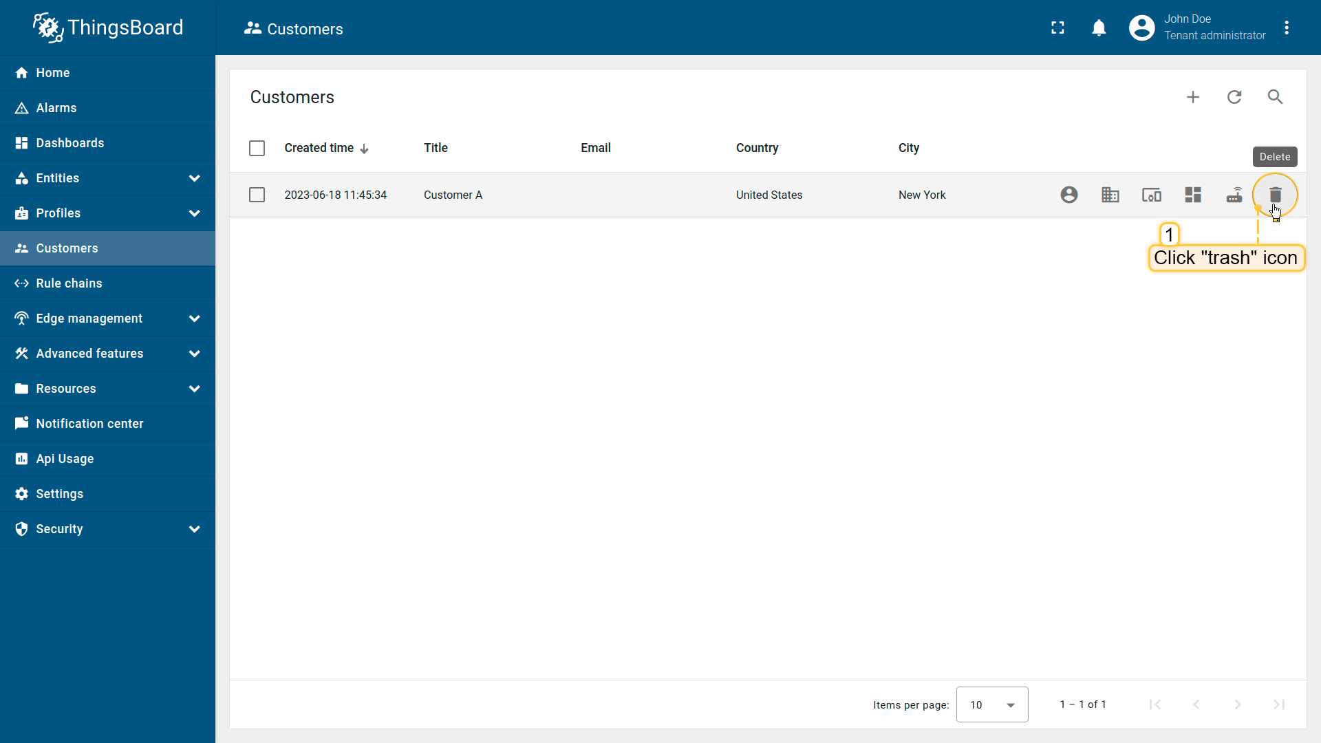 - Click a trash icon can opposite the customer`s name you want to delete;