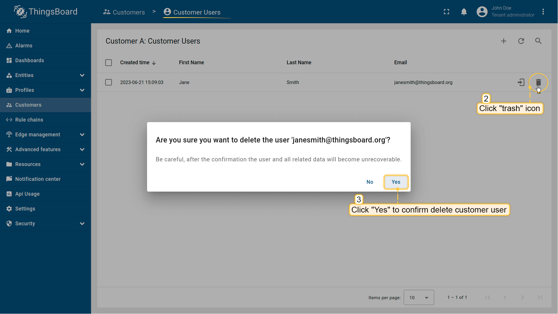 Also, you can delete any customer user from the customer. The steps are the same as when deleting a customer.
