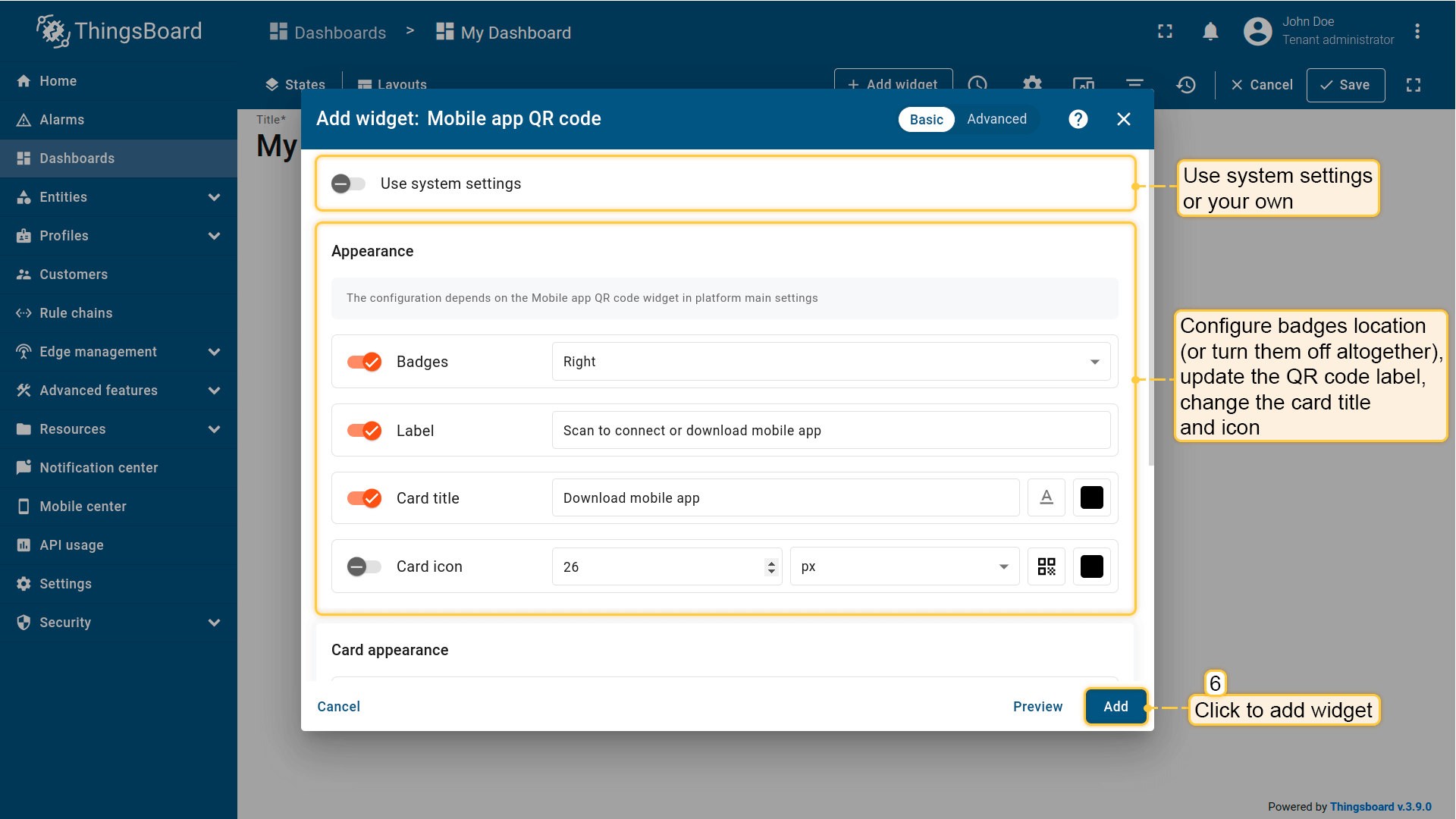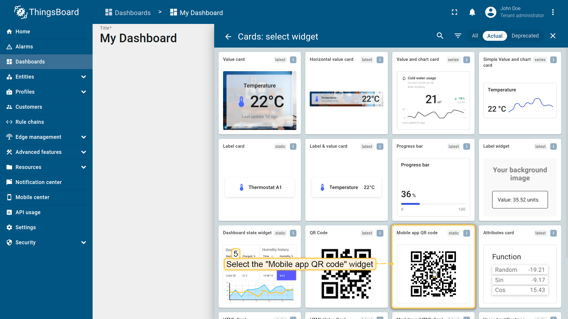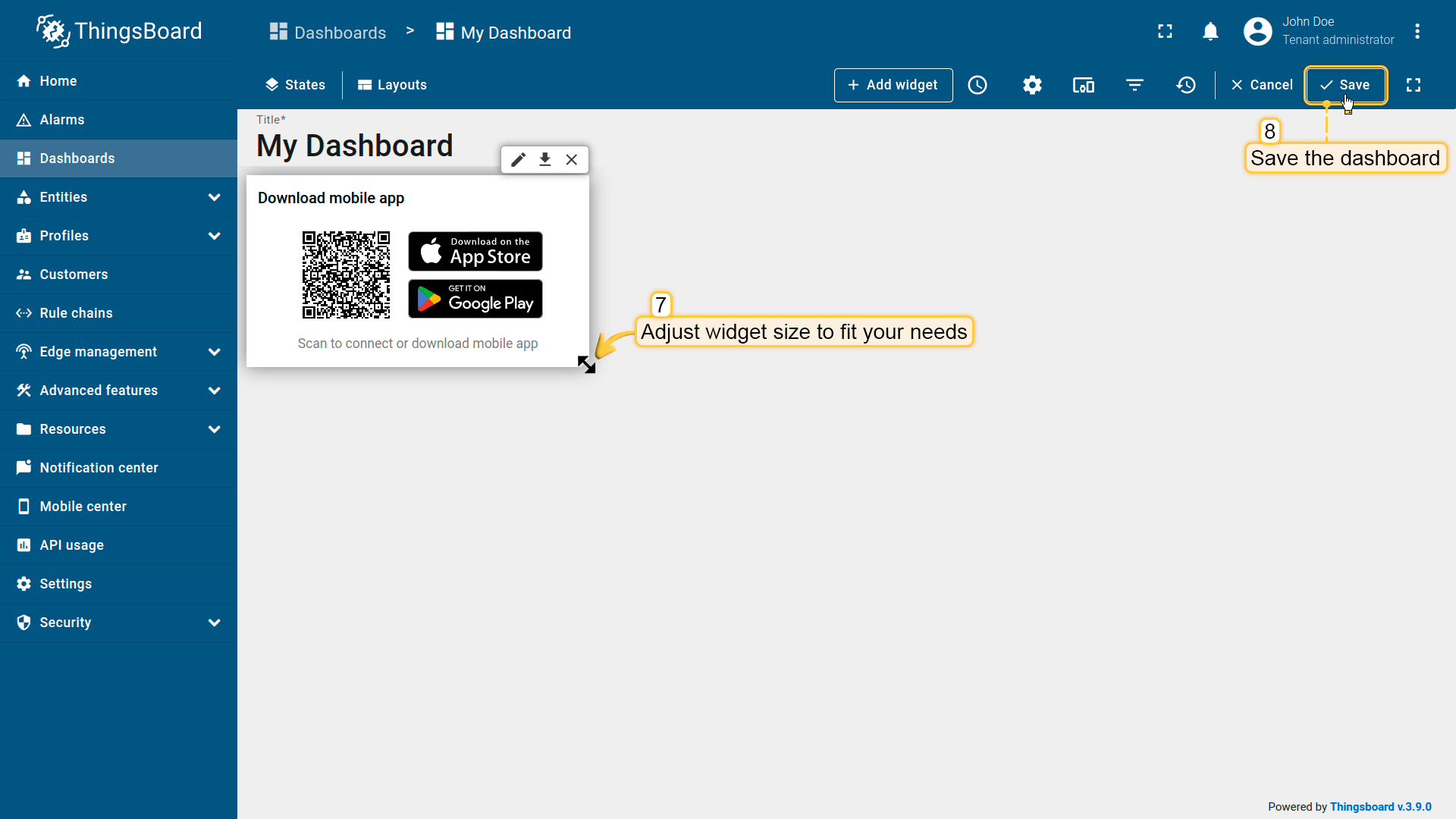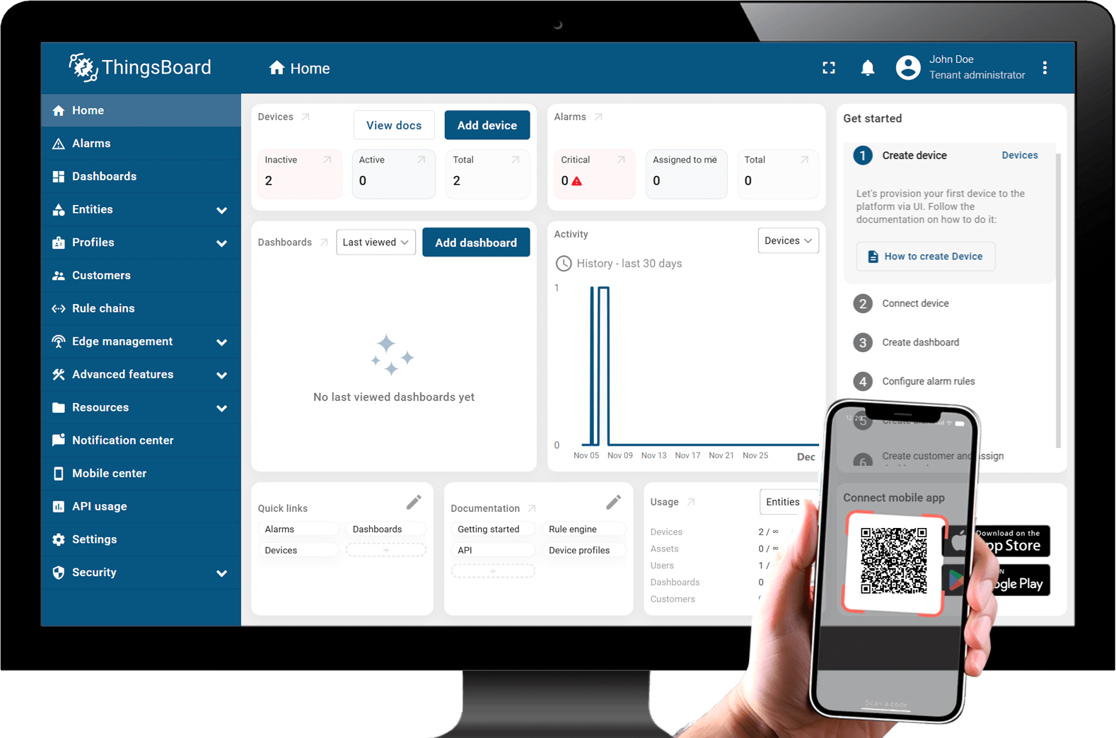 With the release of ThingsBoard 3.7, we’ve also introduced the “Mobile app QR code” widget. You can use this widget on your dashboards to simplify the login process for your customers on their mobile devices.