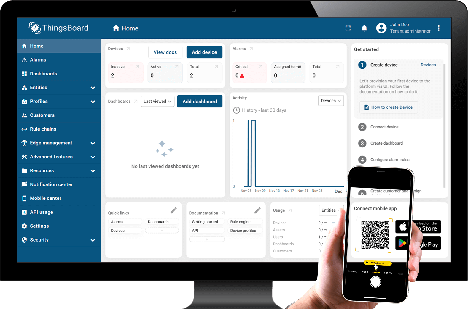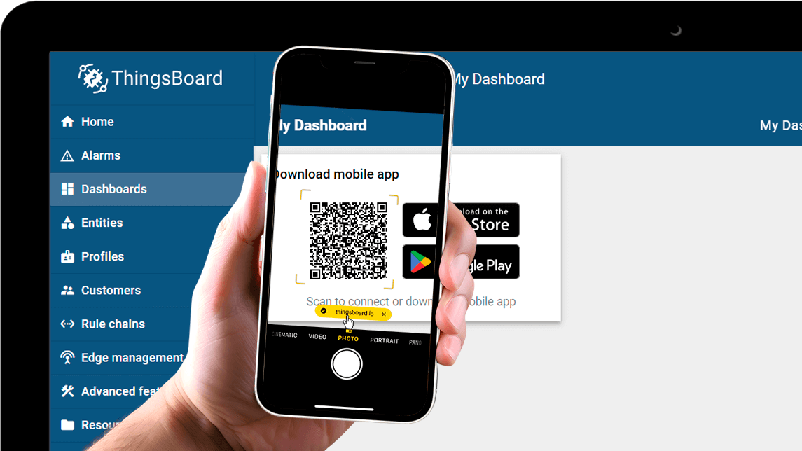 Scan the QR code with the ThingsBoard mobile app, and you will instantly gain access to your account, without the need to manually enter your credentials.